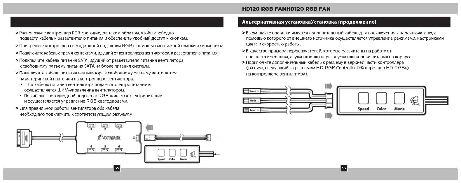 próprio controlador da ventoinha. a. Cor = Seleção da cor b. Modo = Seleção do modo c. Velocidade = Seleção da velocidade InstalaçãoRecursos da série HD RGB > Notas de ligação