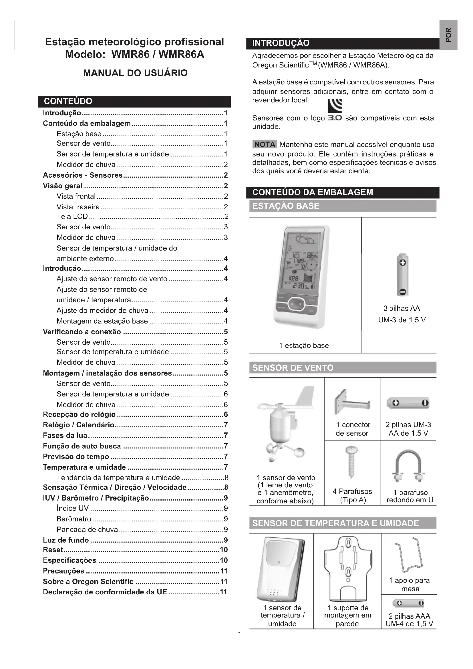 - Declaração de conformidade da UE INTRODUÇÃO Agradecemos por escolher a Estação Meteorológica da Oregon Scientic p. 11