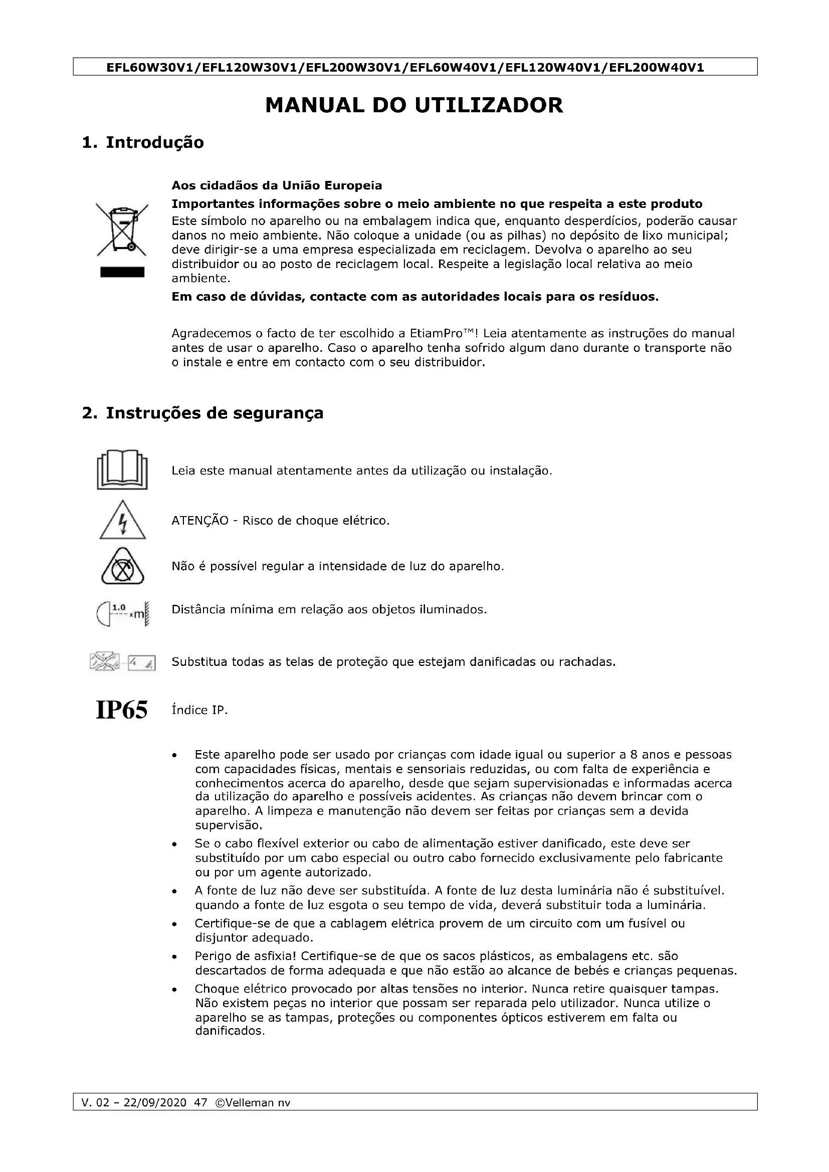 MANUAL DE UTILIZADOR EFL60W40V1 EtiamPro