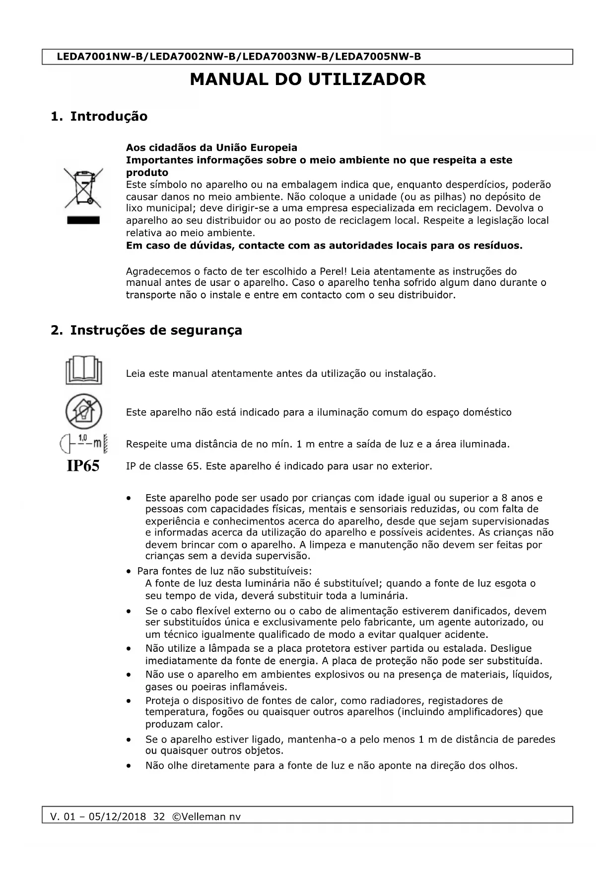 MANUAL DE UTILIZADOR LEDA7001NWB Perel