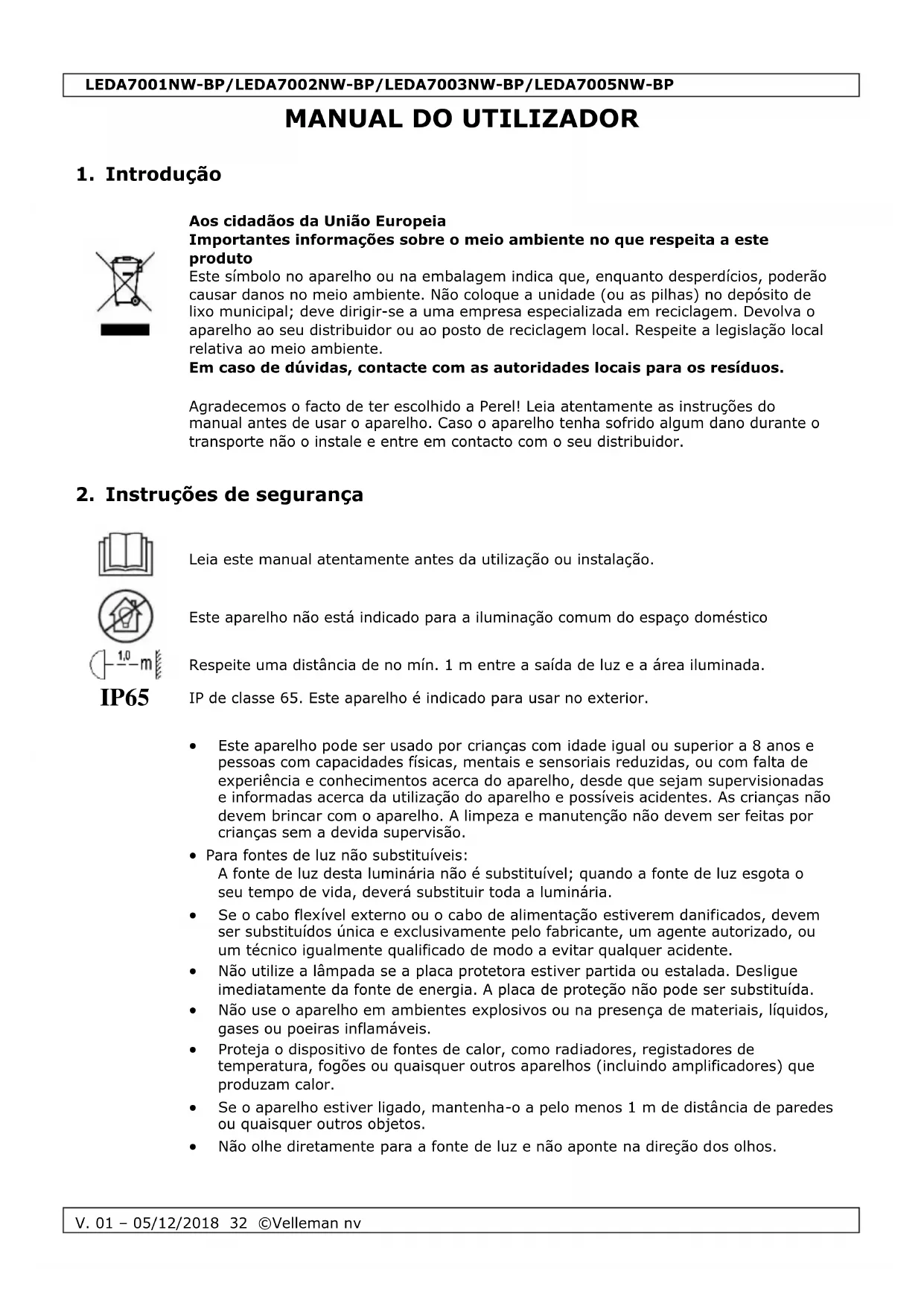 MANUAL DE UTILIZADOR LEDA7005NWBP Perel