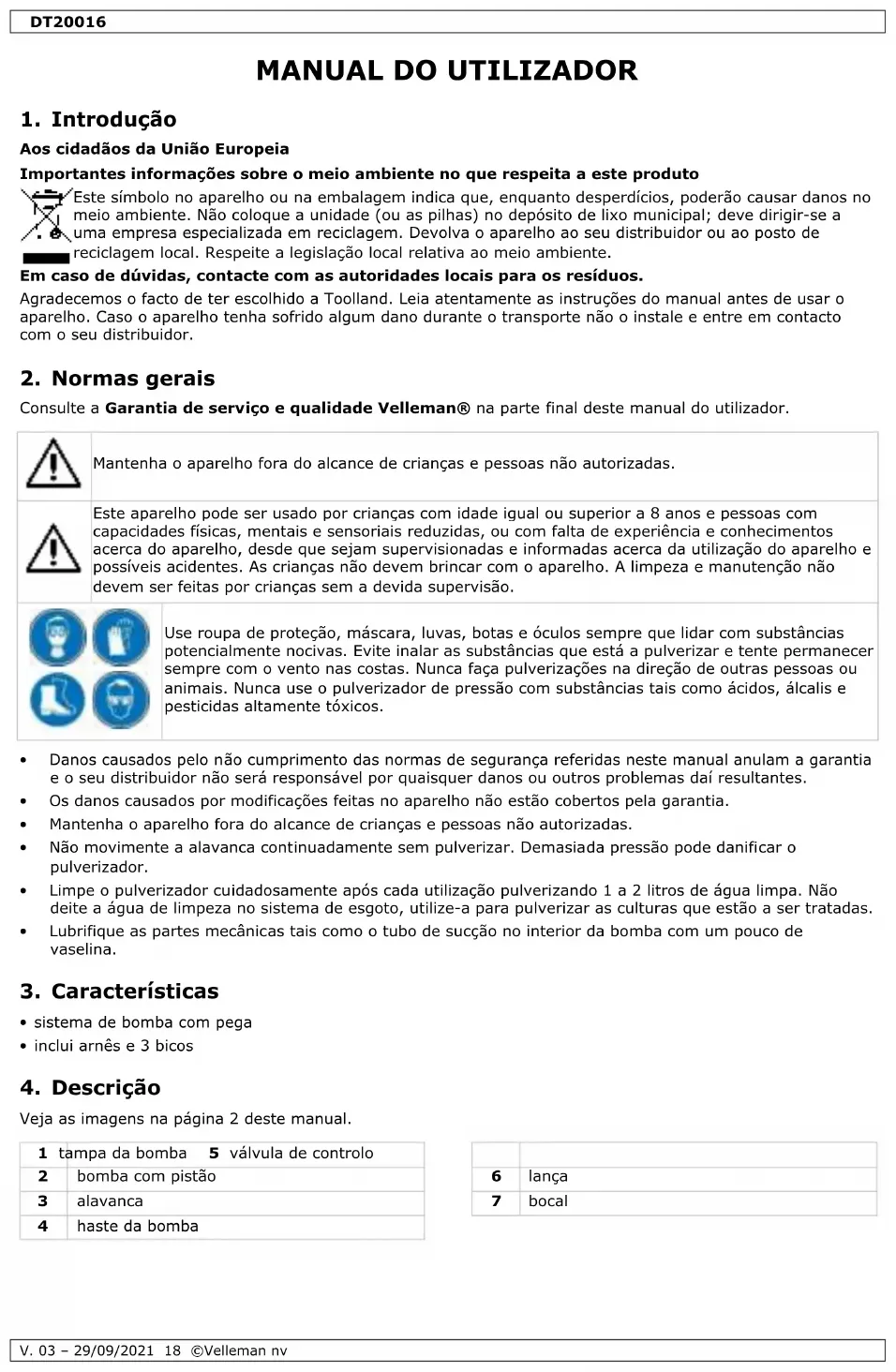 Este pulverizador destina-se a ser usado com soluções à base de água para inseticidas, fungicidas e herbicidas. Respeite sempre as instruções do fabricante, inscritas na embalagem do produto químico, bem como as instruções referidas mais abaixo.