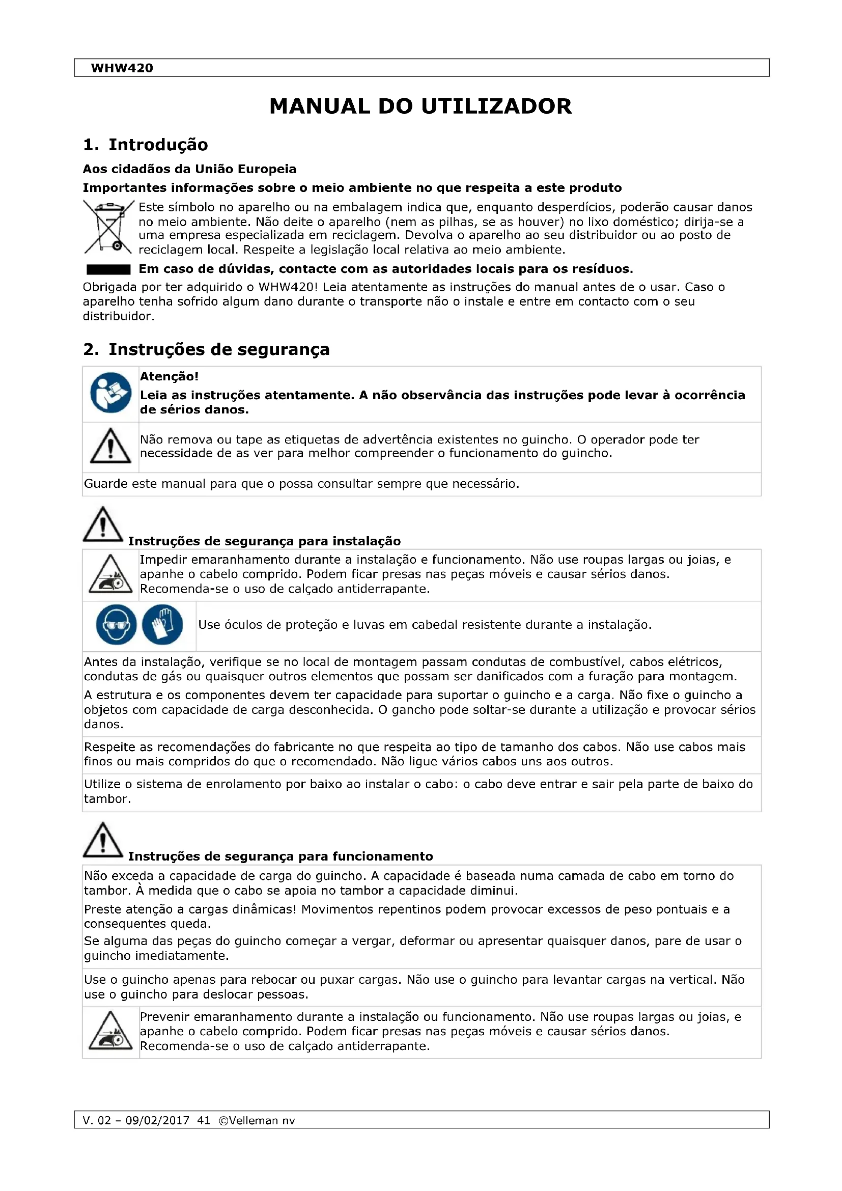 Baixe as instruções para o seu Guincho manual em formato PDF gratuitamente! Encontre o seu manual WHW420 - Toolland e retome o controlo do seu dispositivo eletrónico. Nesta página estão publicados todos os documentos necessários para a utilização do seu dispositivo. WHW420 da marca Toolland.