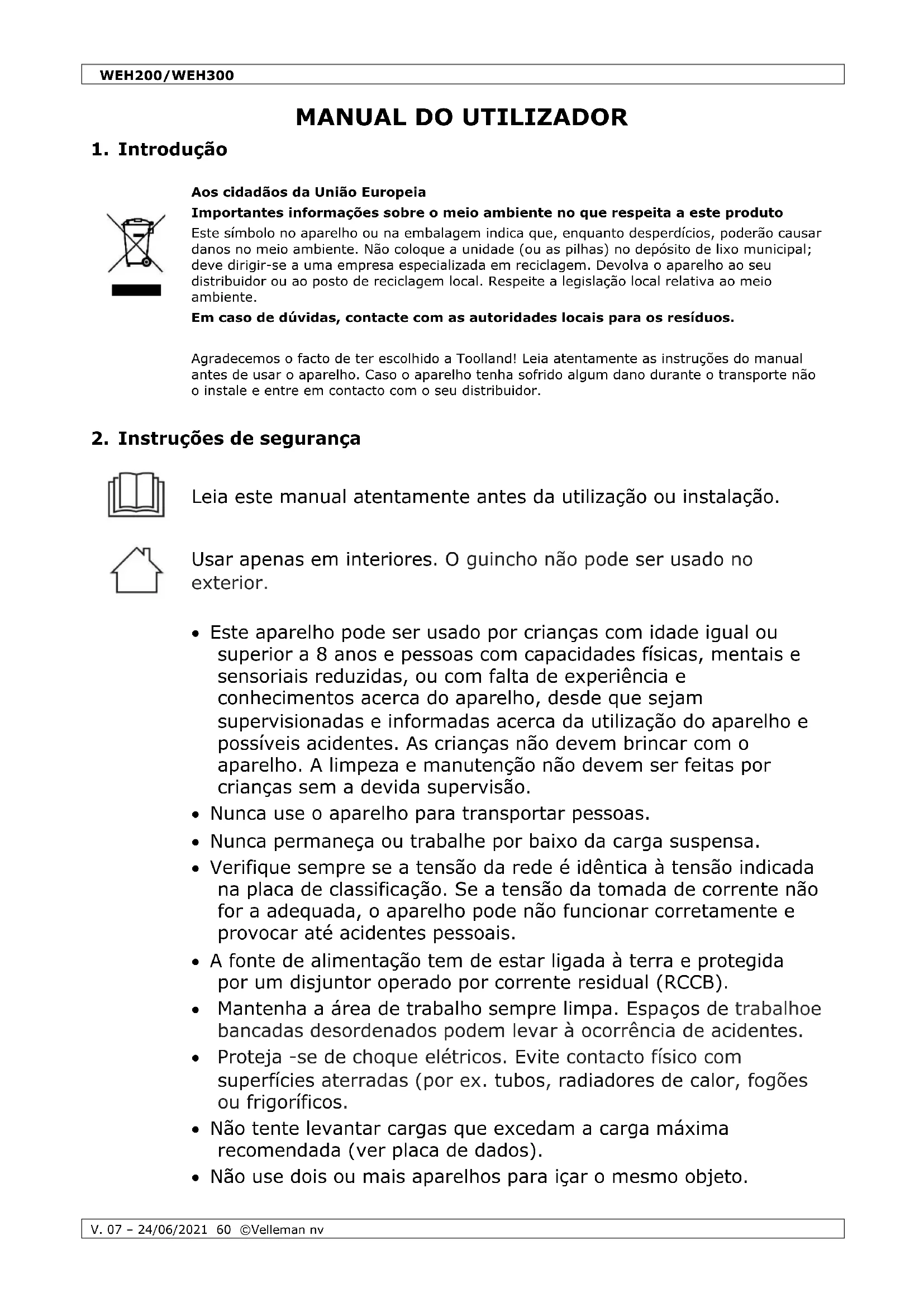 MANUAL DE UTILIZADOR WEH200 Toolland