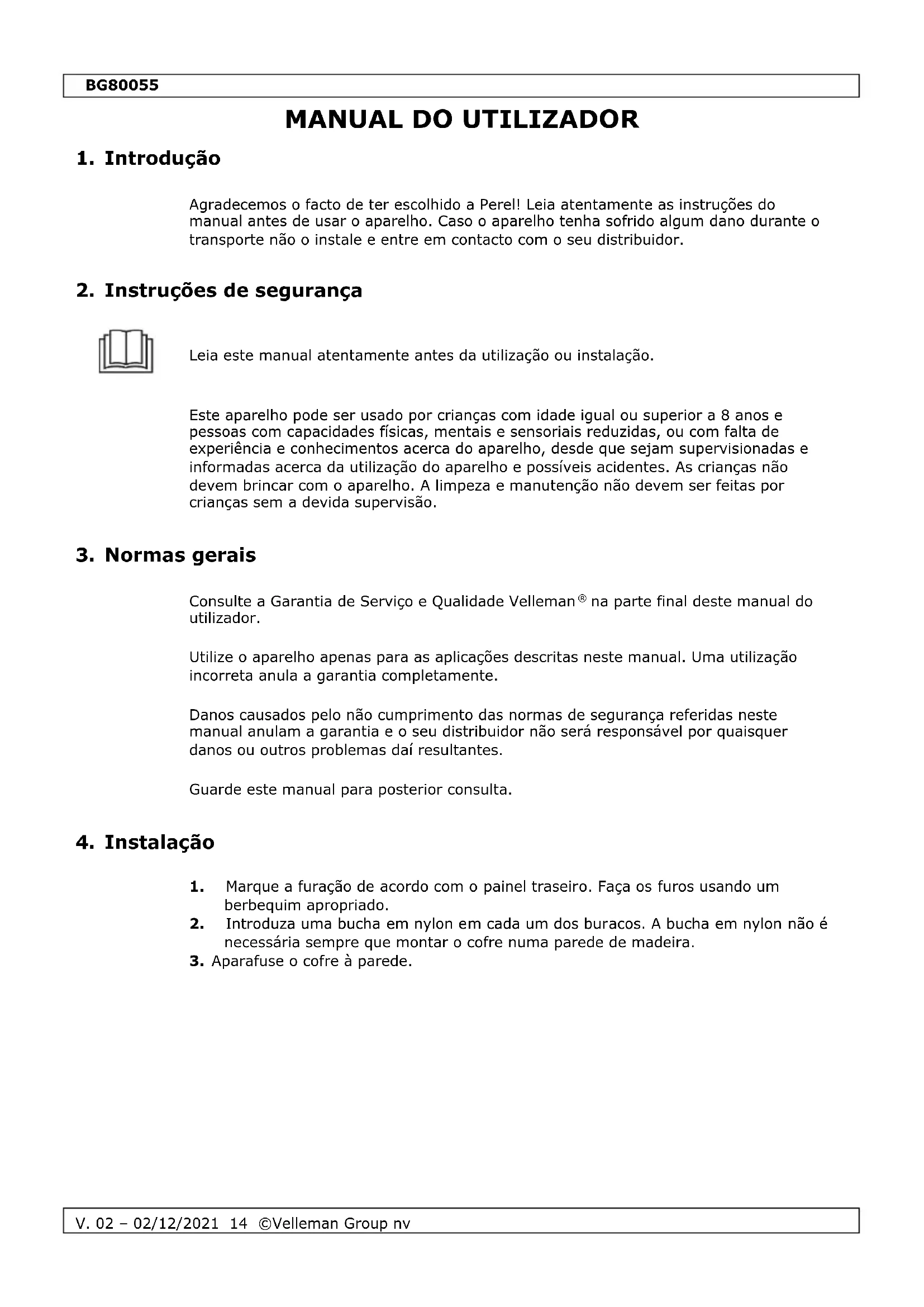 MANUAL DE UTILIZADOR BG80055 Perel