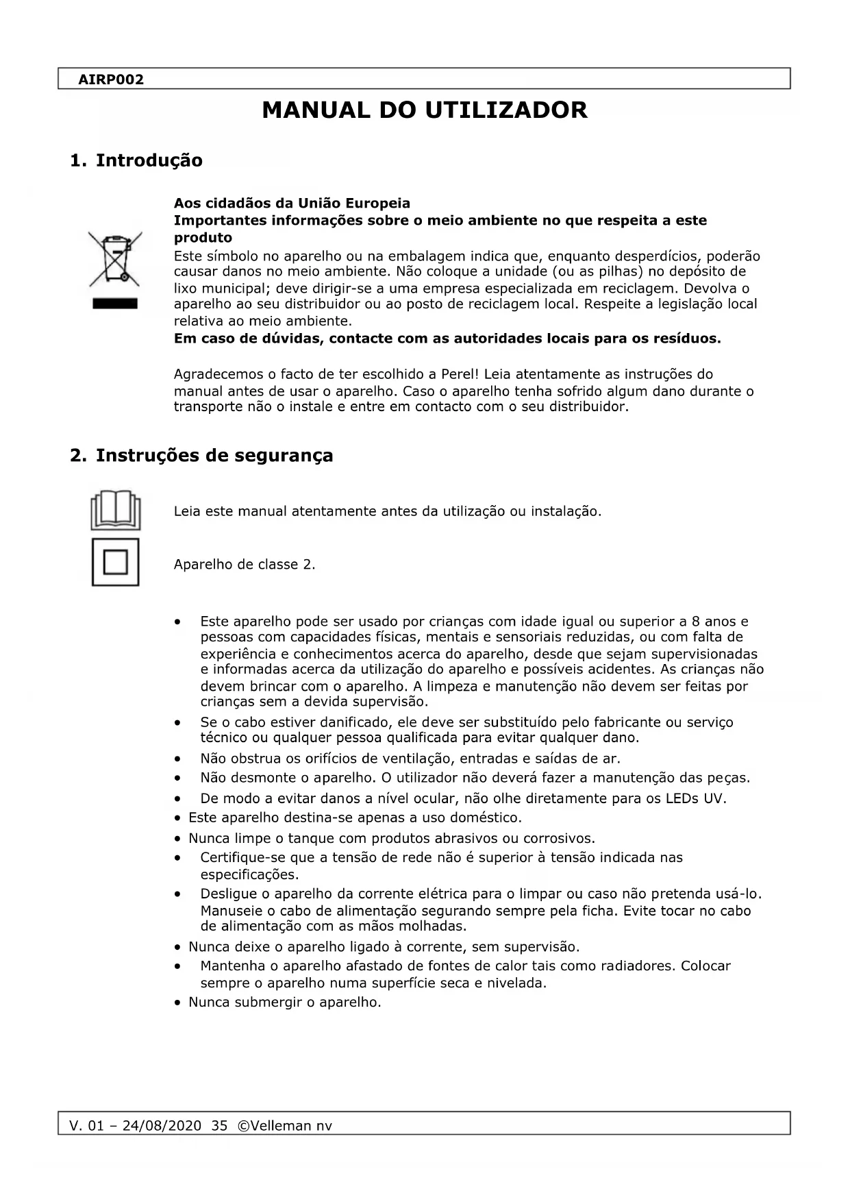 MANUAL DE UTILIZADOR AIRP002 Perel