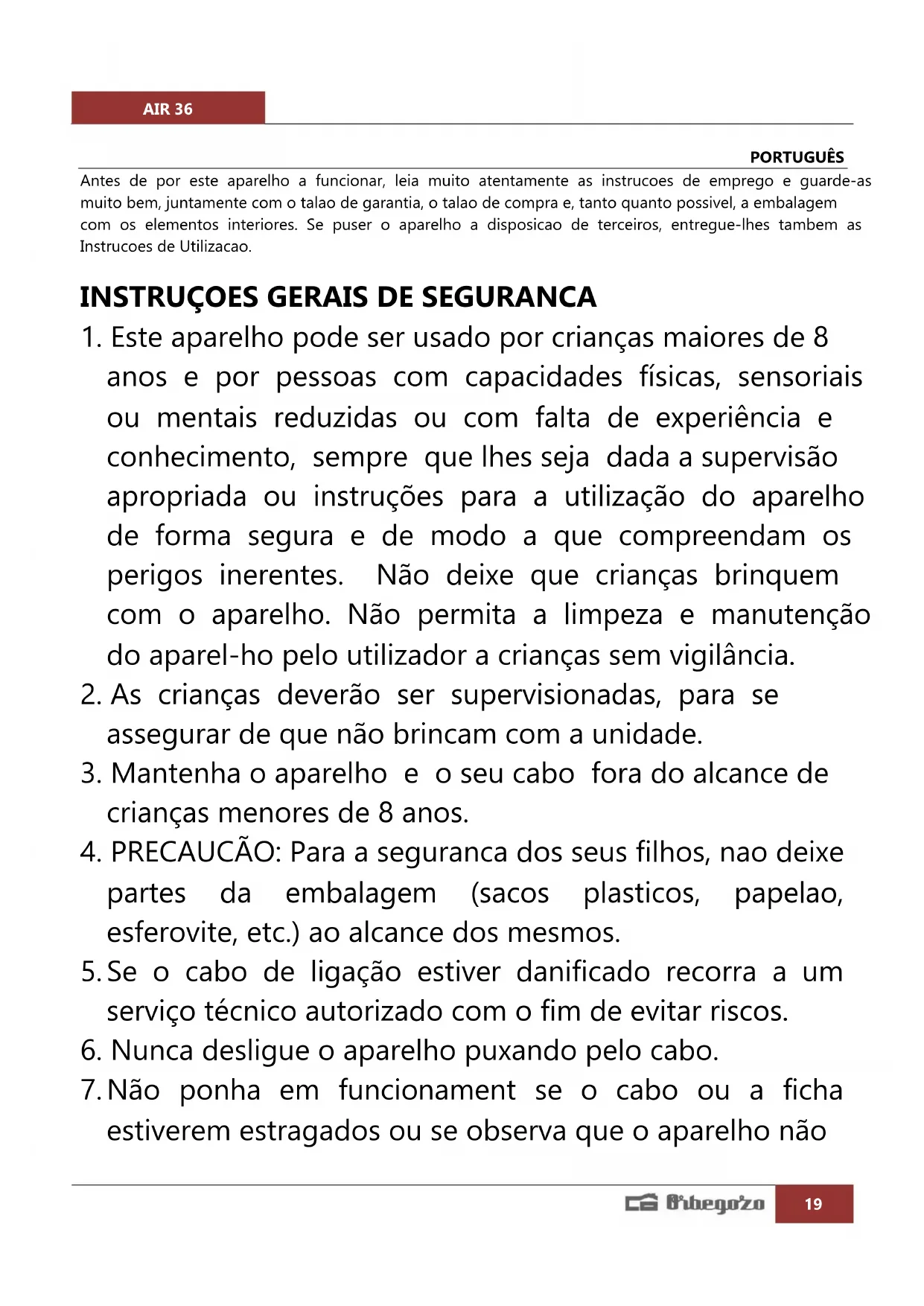MANUAL DE UTILIZADOR AIR 36 Orbegozo
