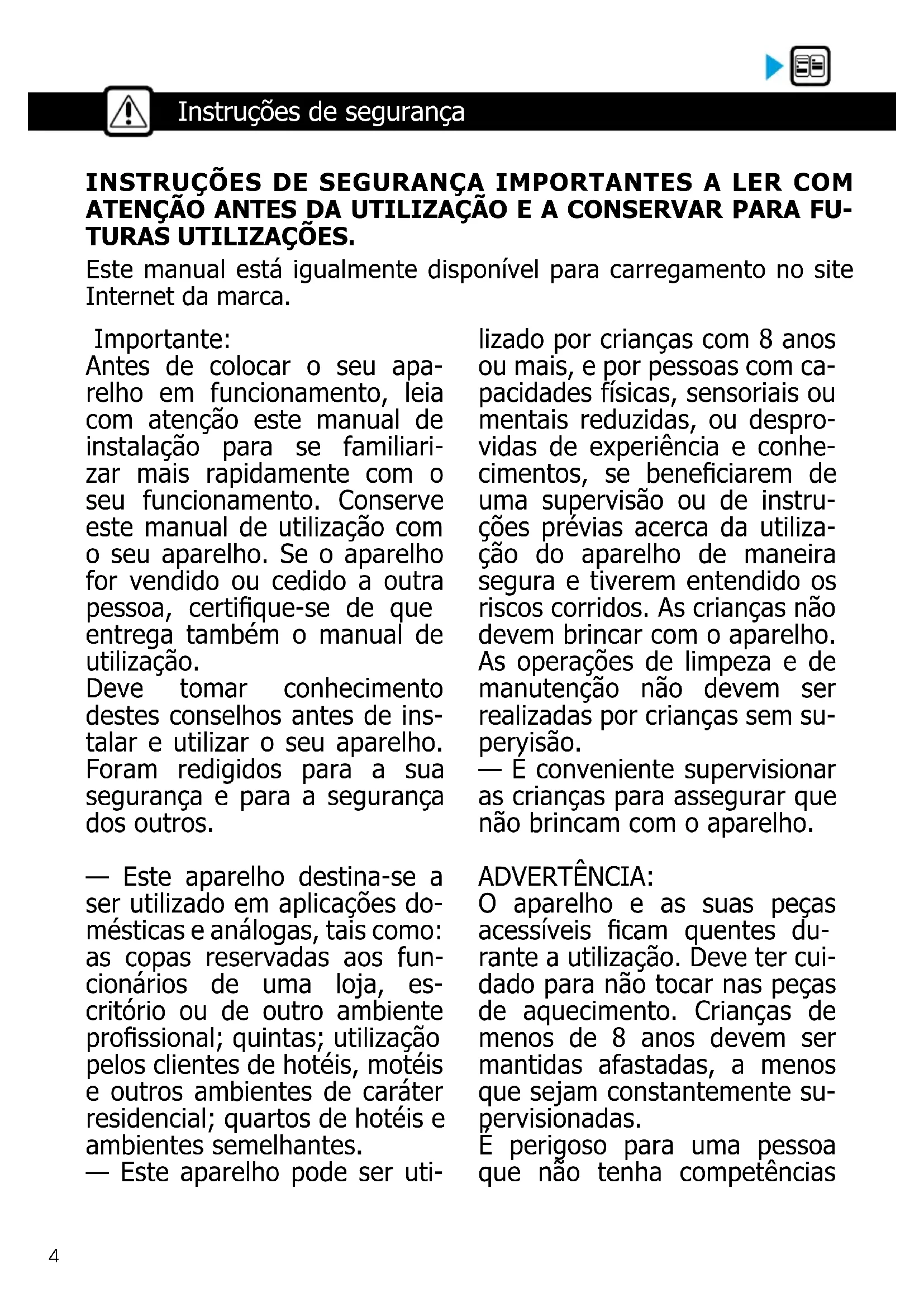 INSTRUÇÕES DE UTILIZAÇÃO PT