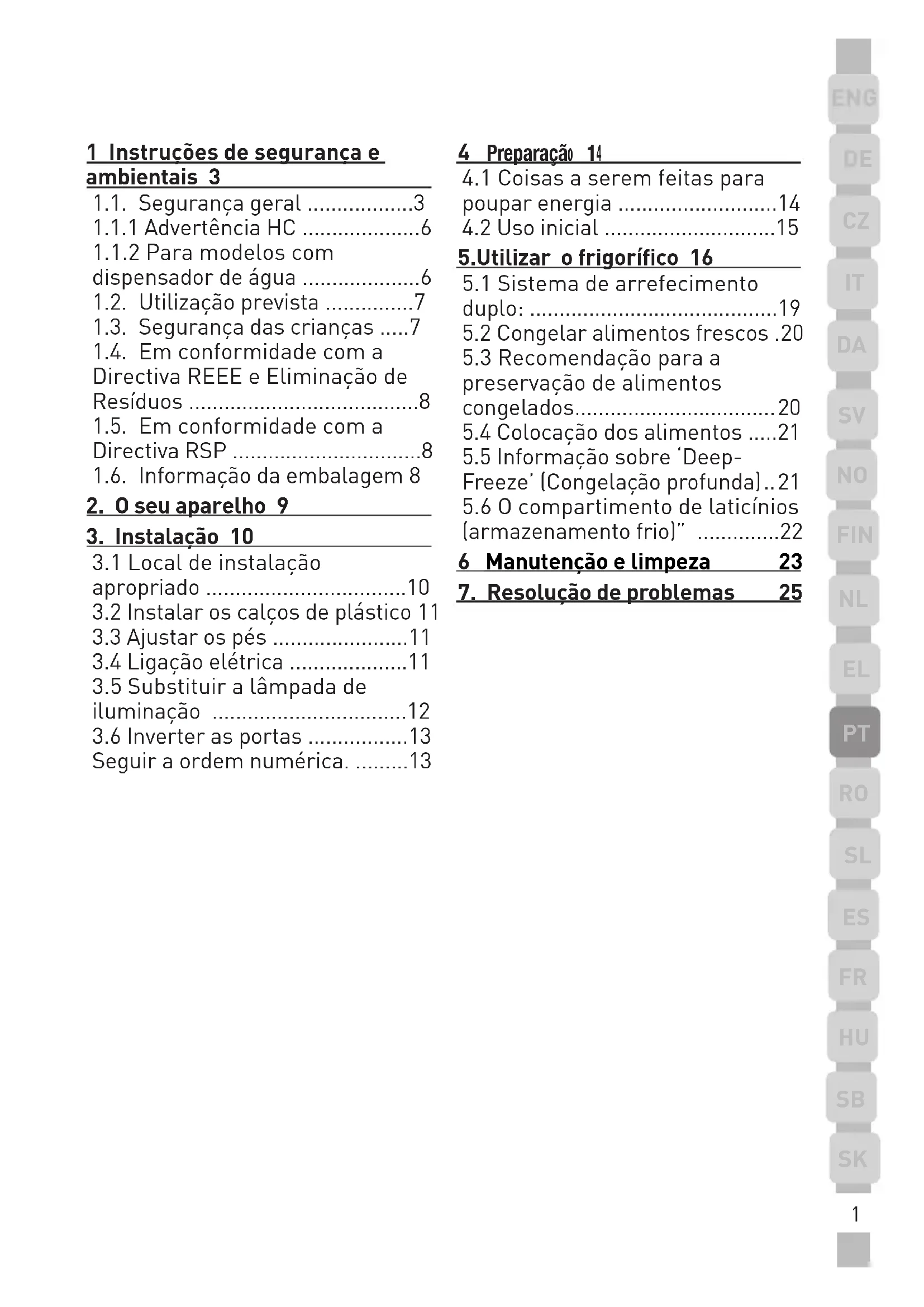 1 Instruções de segurança e ambienta-