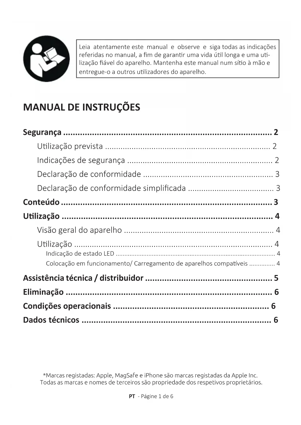 - Colocação em funcionamento/ Carregamento de aparelhos compaveis p. 4