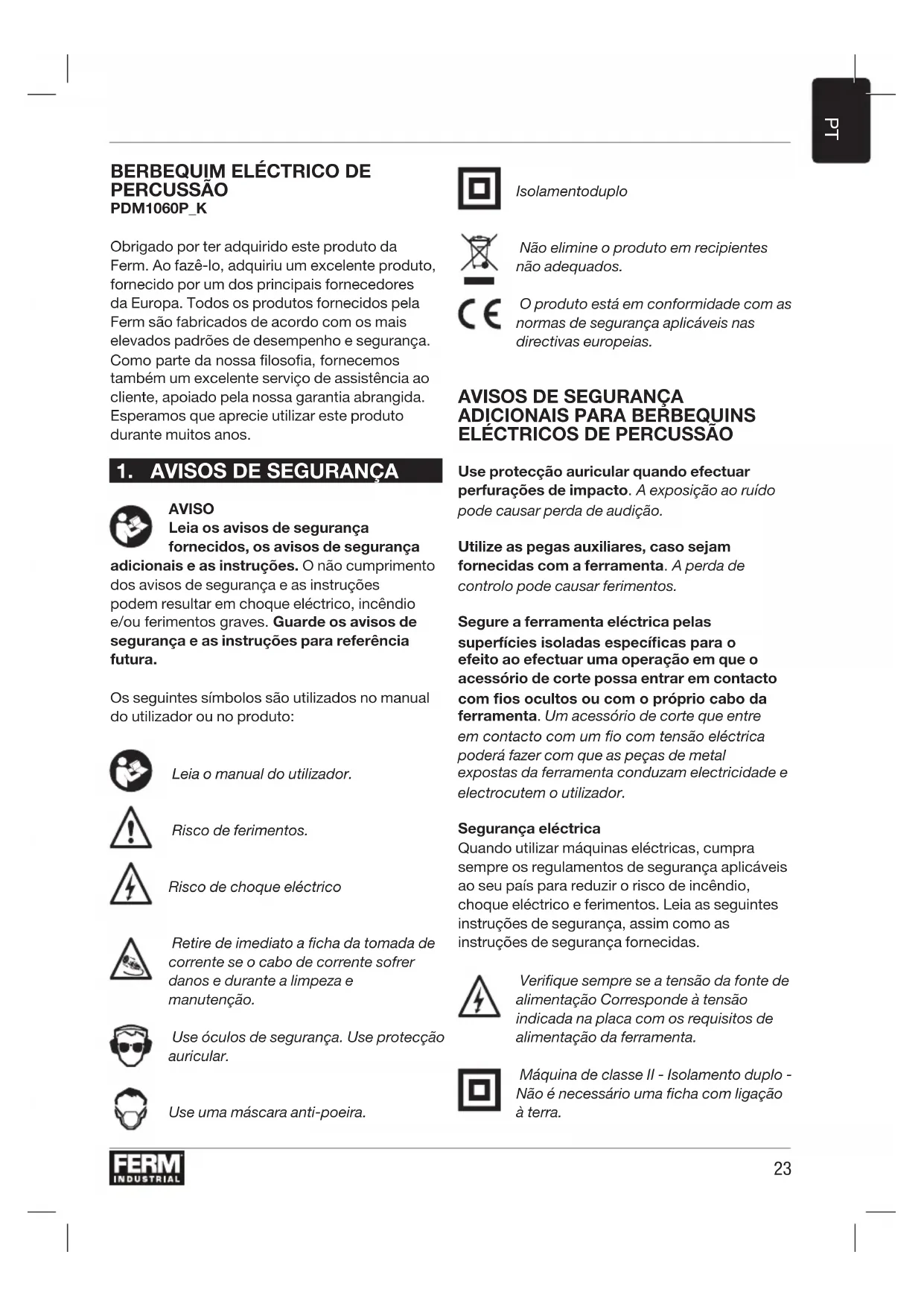 Encontre gratuitamente o manual do aparelho PDM1060P_K Ferm em formato PDF.