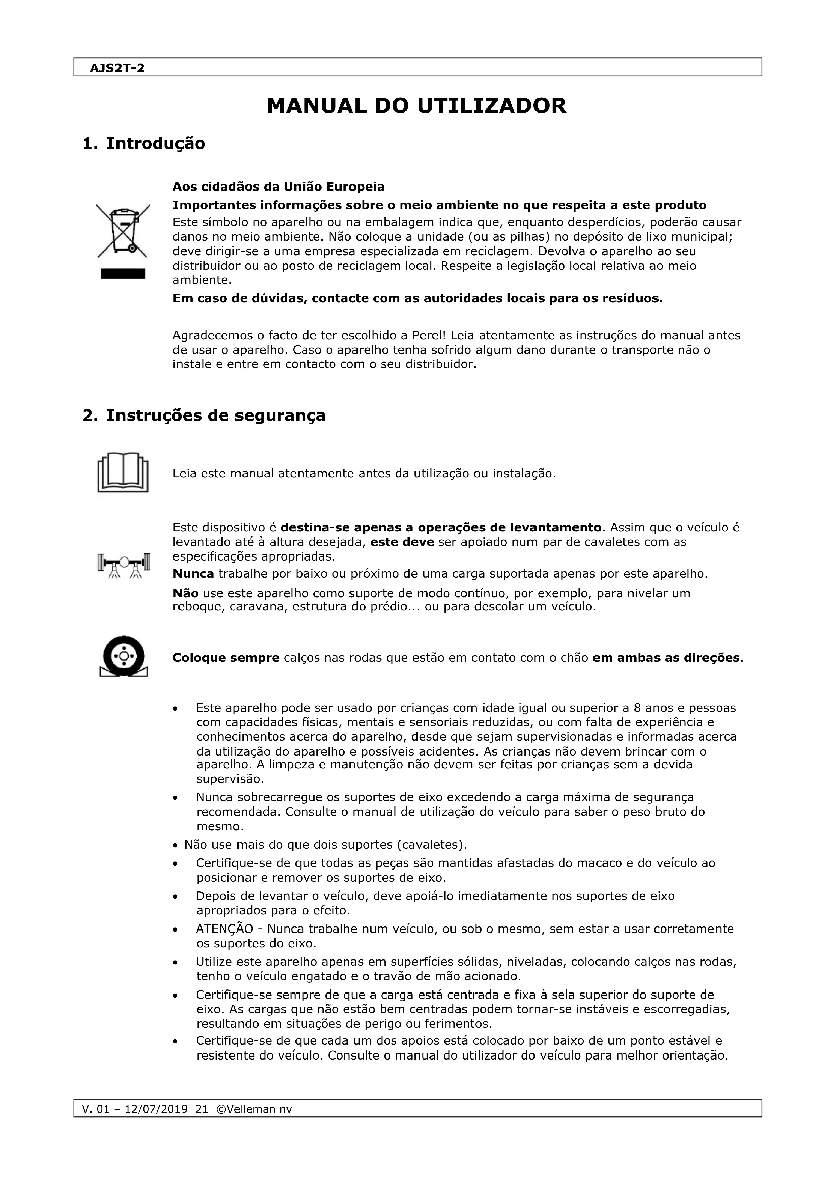 Baixe as instruções para o seu Macaco em formato PDF gratuitamente! Encontre o seu manual AJS2T2 - Perel e retome o controlo do seu dispositivo eletrónico. Nesta página estão publicados todos os documentos necessários para a utilização do seu dispositivo. AJS2T2 da marca Perel.