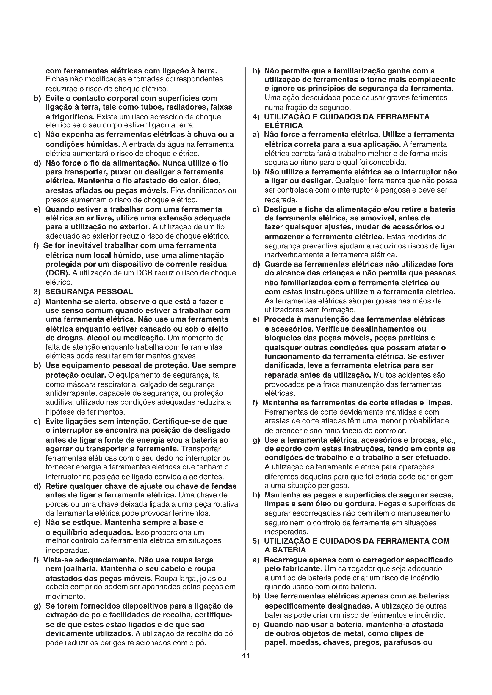 - Se houver peças em falta ou danicadas, contacte o seu41 h) Não permita que a familiarização ganha com a utilização de ferramentas o torne mais complacente e ignore os princípios de segurança da ferramenta. Uma ação descuidada pode causar graves ferimentos numa fração de segundo.