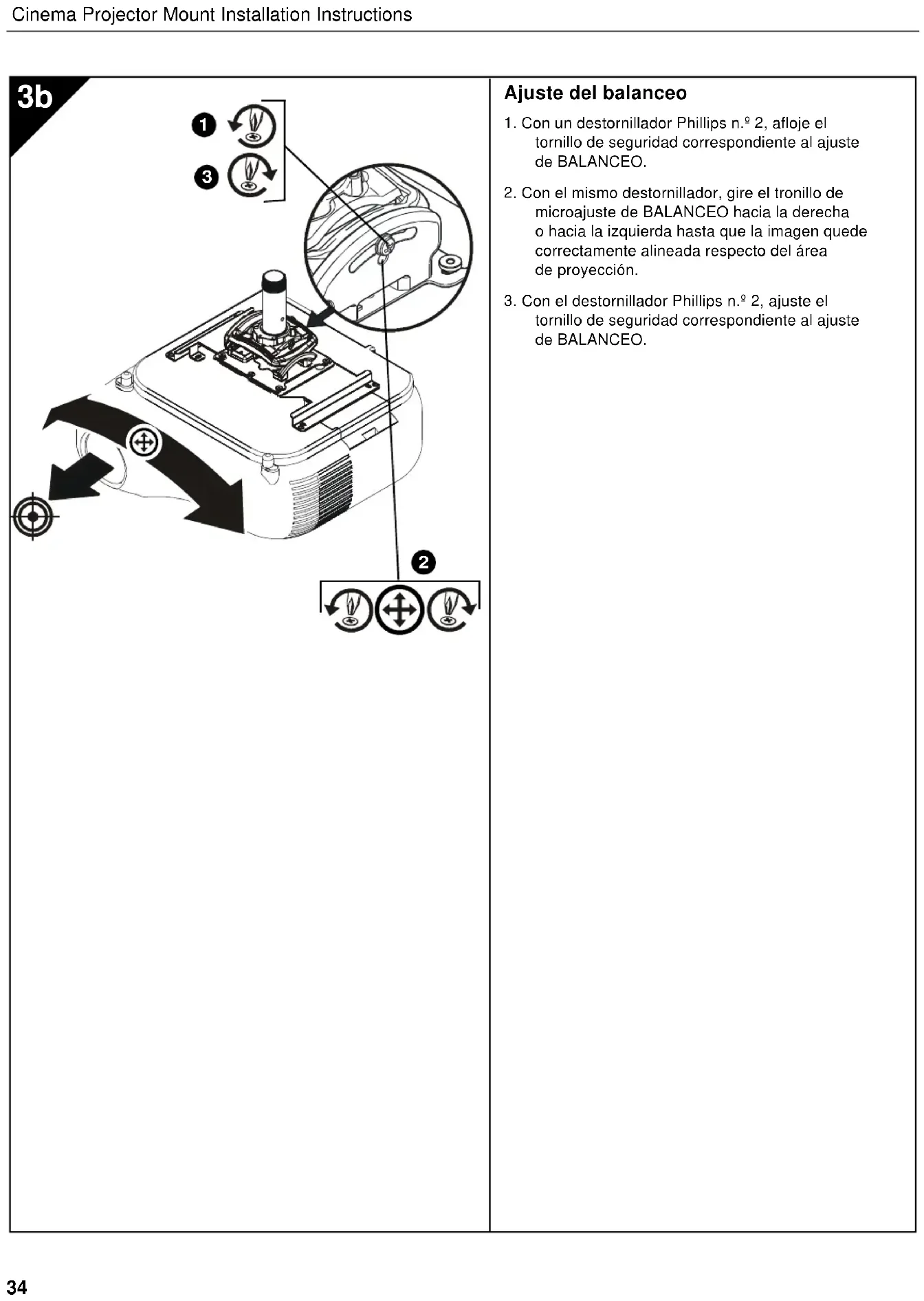 travamento para prender o projetor no suporte do projetor. 2cInstallation Instructions Cinema Projector Mount