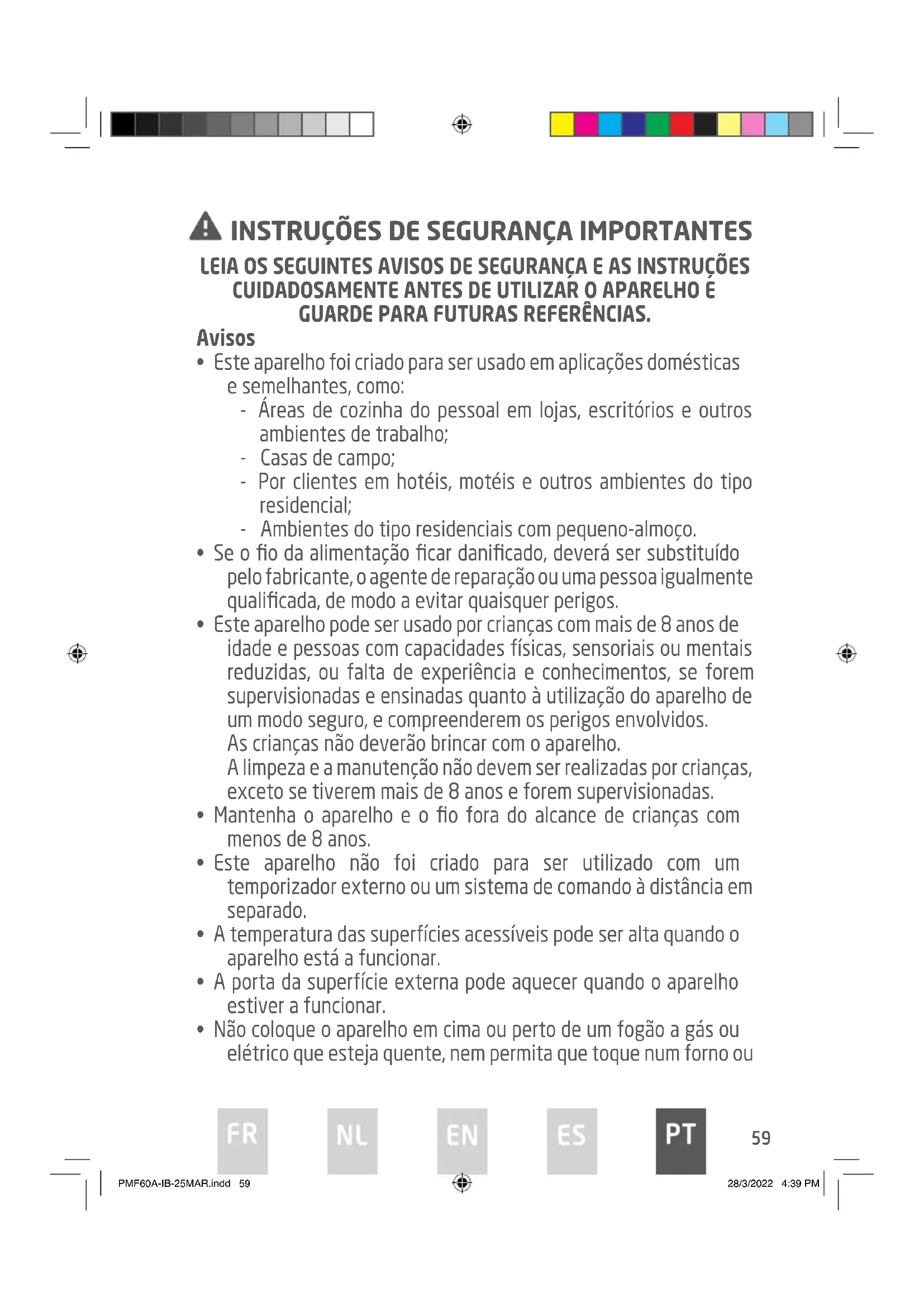 - Tenha muito cuidado quando usar recipientes com outros materiais sem ser metal ou cerâmica. PMF60A-IB-25MAR.indd 60PMF60A-IB-25MAR.indd 60 28/3/2022 4:39 PM28/3/2022 4:39 PM61