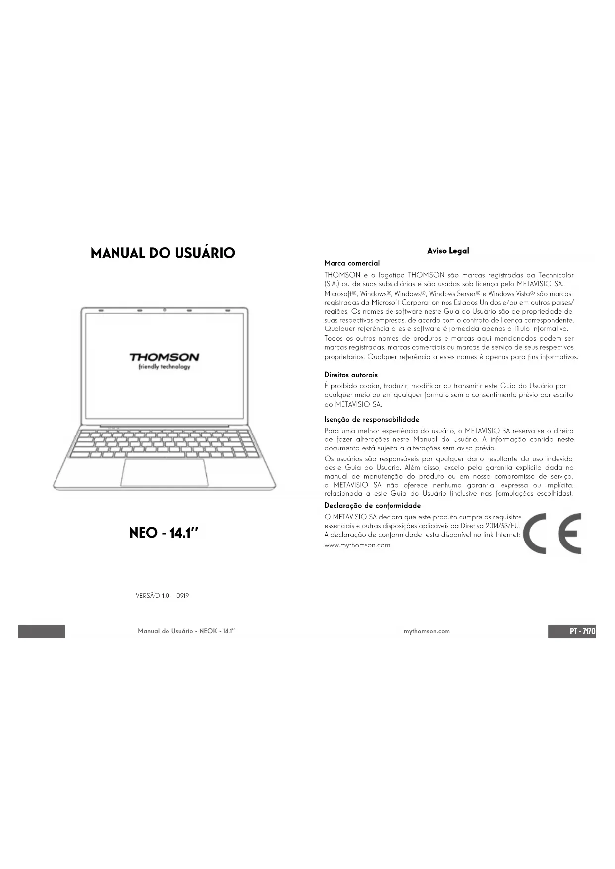 Baixe as instruções para o seu Portátil em formato PDF gratuitamente! Encontre o seu manual NEO 3K - THOMSON e retome o controlo do seu dispositivo eletrónico. Nesta página estão publicados todos os documentos necessários para a utilização do seu dispositivo. NEO 3K da marca THOMSON.