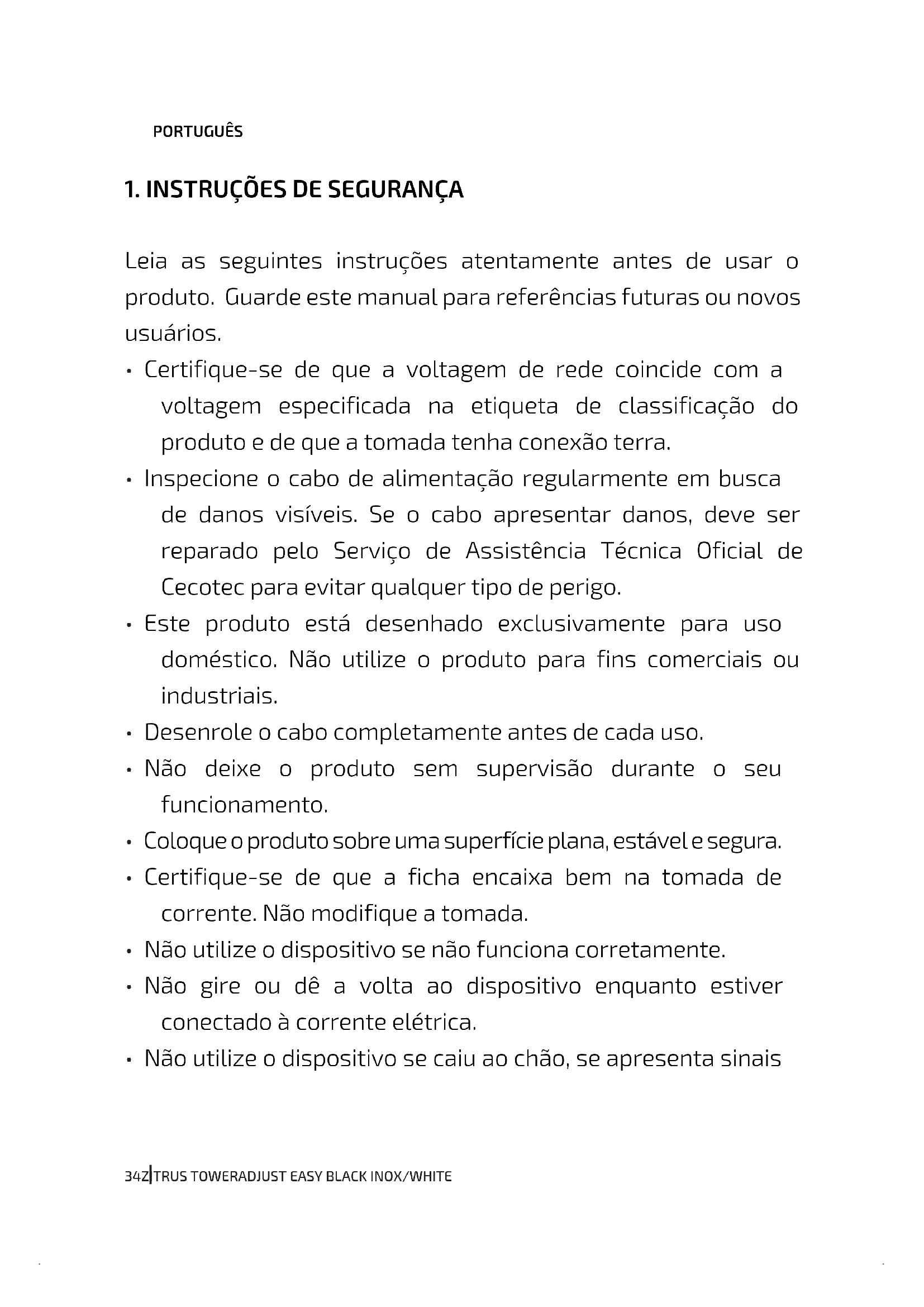 Encontre gratuitamente o manual do aparelho Zitrus TowerAdjust Easy Inox CECOTEC em formato PDF.