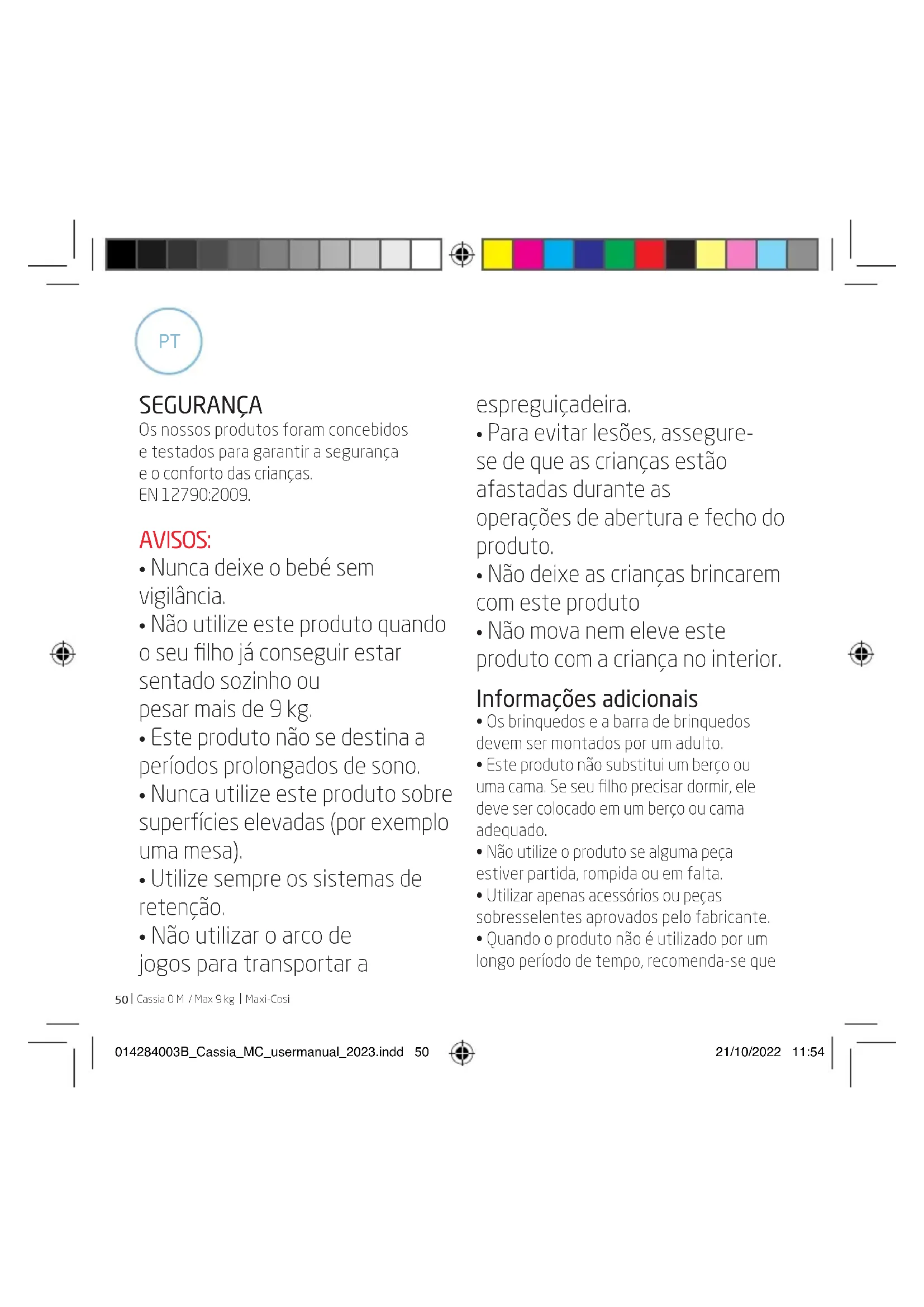 Maxi-Cosi SEGURANÇA Os nossos produtos foram concebidos e testados para garantir a segurança e o conforto das crianças. EN 12790:2009. AVISOS: