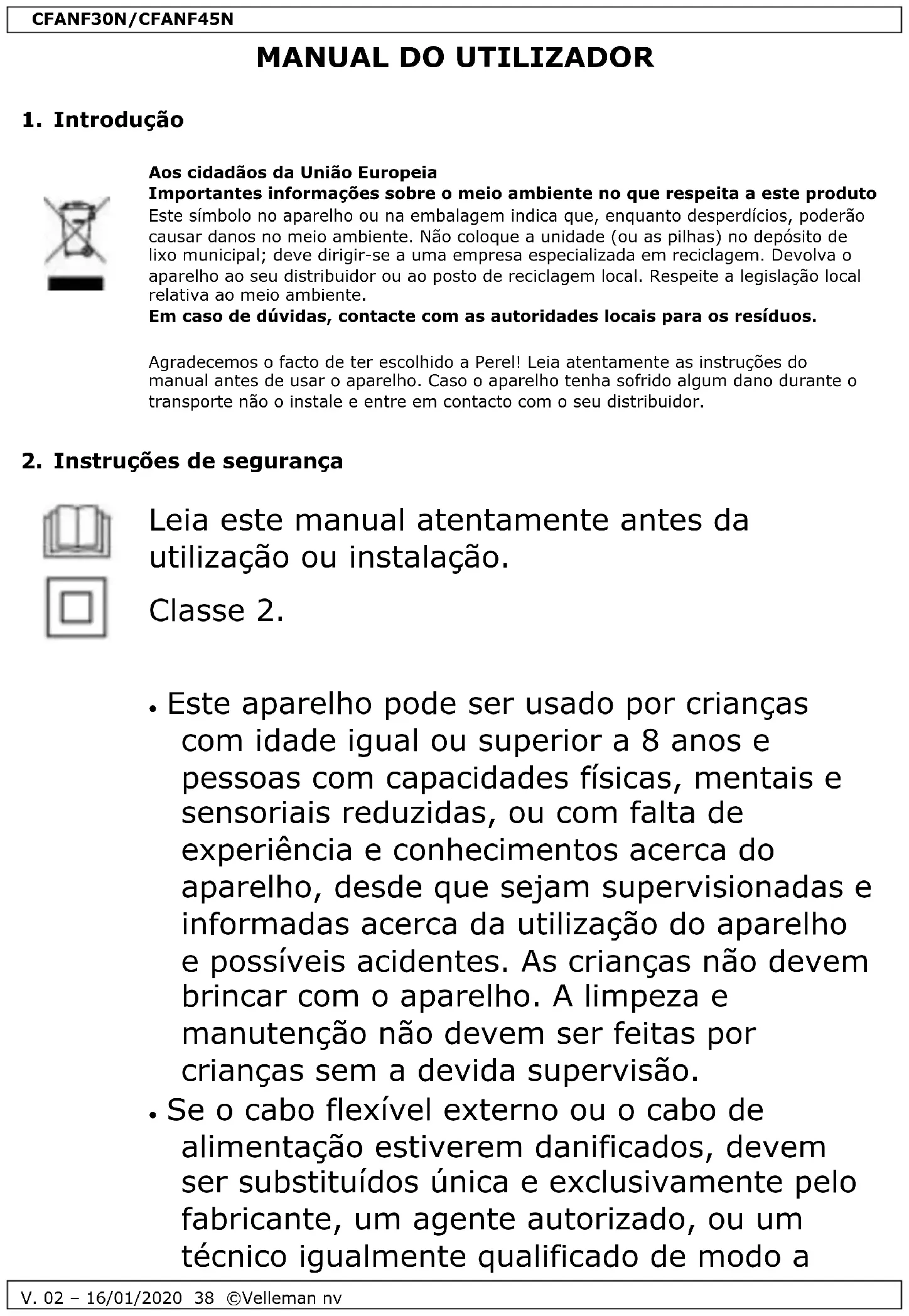 CFANF45N - Ventilador Perel - Manual de utilização gratuito