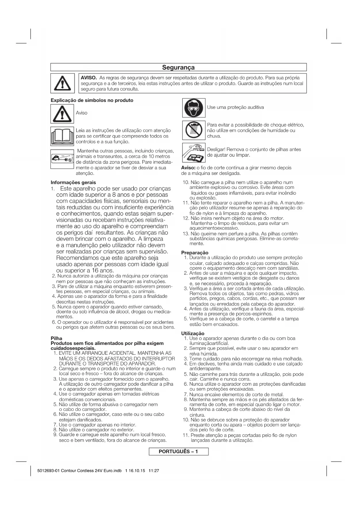 lançadas durante a utilização. 5012693-01 Contour Cordless 24V Euro.indb 1 16.10.15 11:27PORTUGUÊS – 2