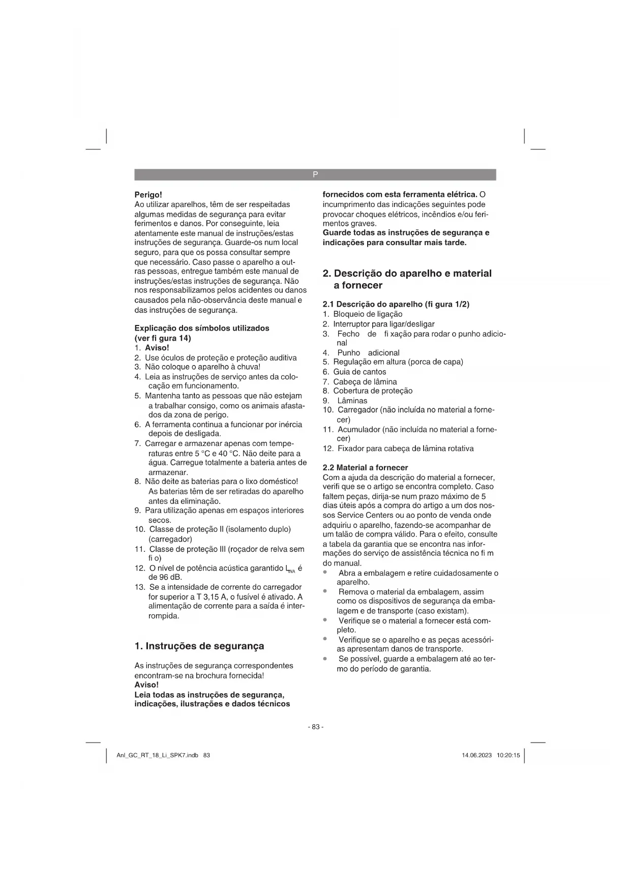 Se possível, guarde a embalagem até ao ter- mo do período de garantia. Anl_GC_RT_18_Li_SPK7.indb 83Anl_GC_RT_18_Li_SPK7.indb 83 14.06.2023 10:20:1514.06.2023 10:20:15P