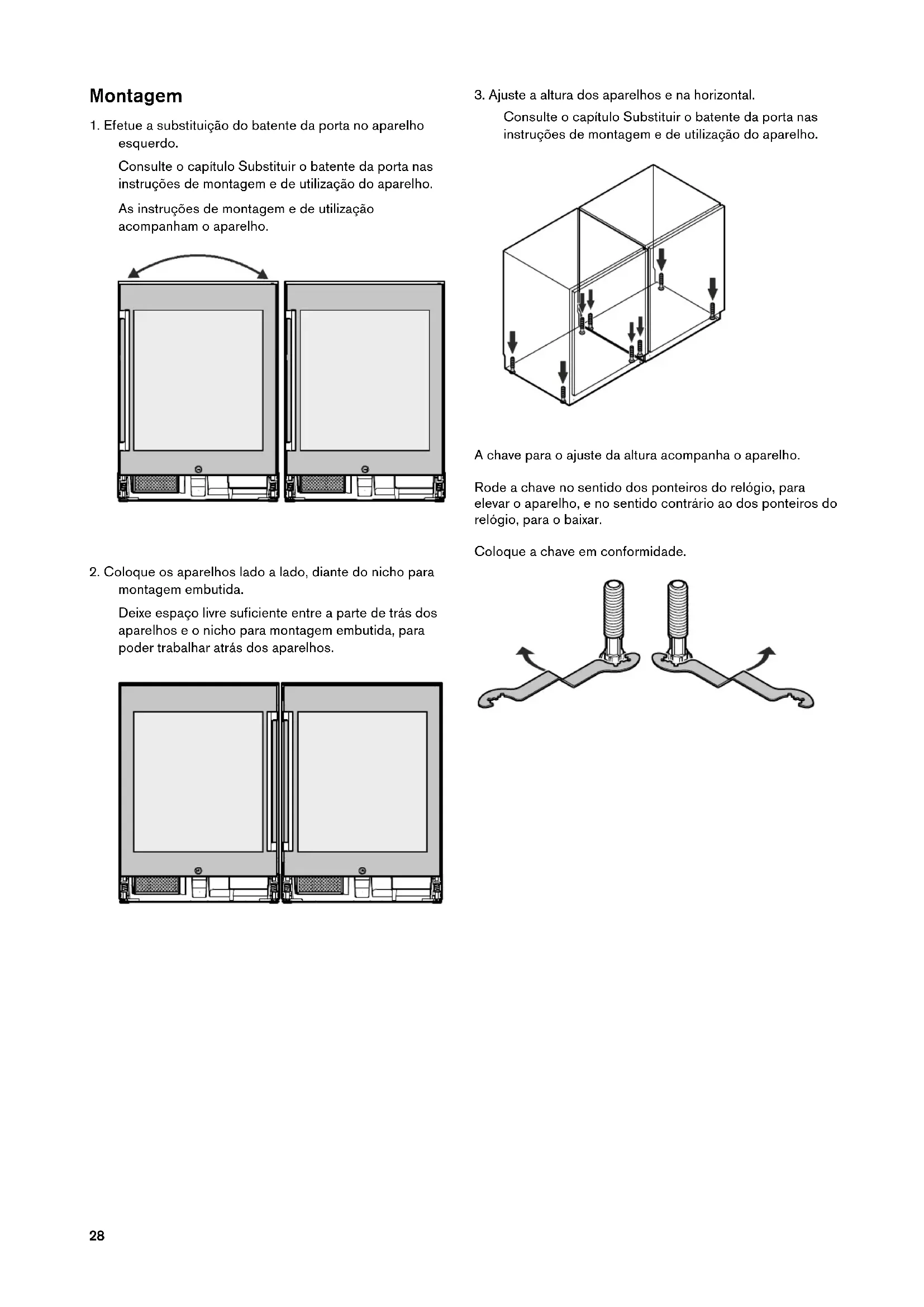 Consulte o capítulo Substituir o batente da porta nas instruções de montagem e de utilização do aparelho. A chave para o ajuste da altura acompanha o aparelho. Rode a chave no sentido dos ponteiros do relógio, para elevar o aparelho, e no sentido contrário ao dos ponteiros do relógio, para o baixar. Coloque a chave em conformidade.29