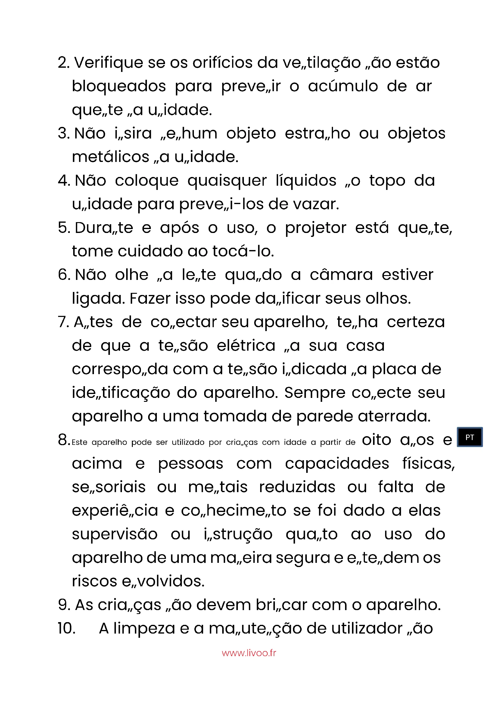 PTwww.livoo.fr devem ser feitas por crianças a não ser que sejam maiores de oito anos e supervisionadas.