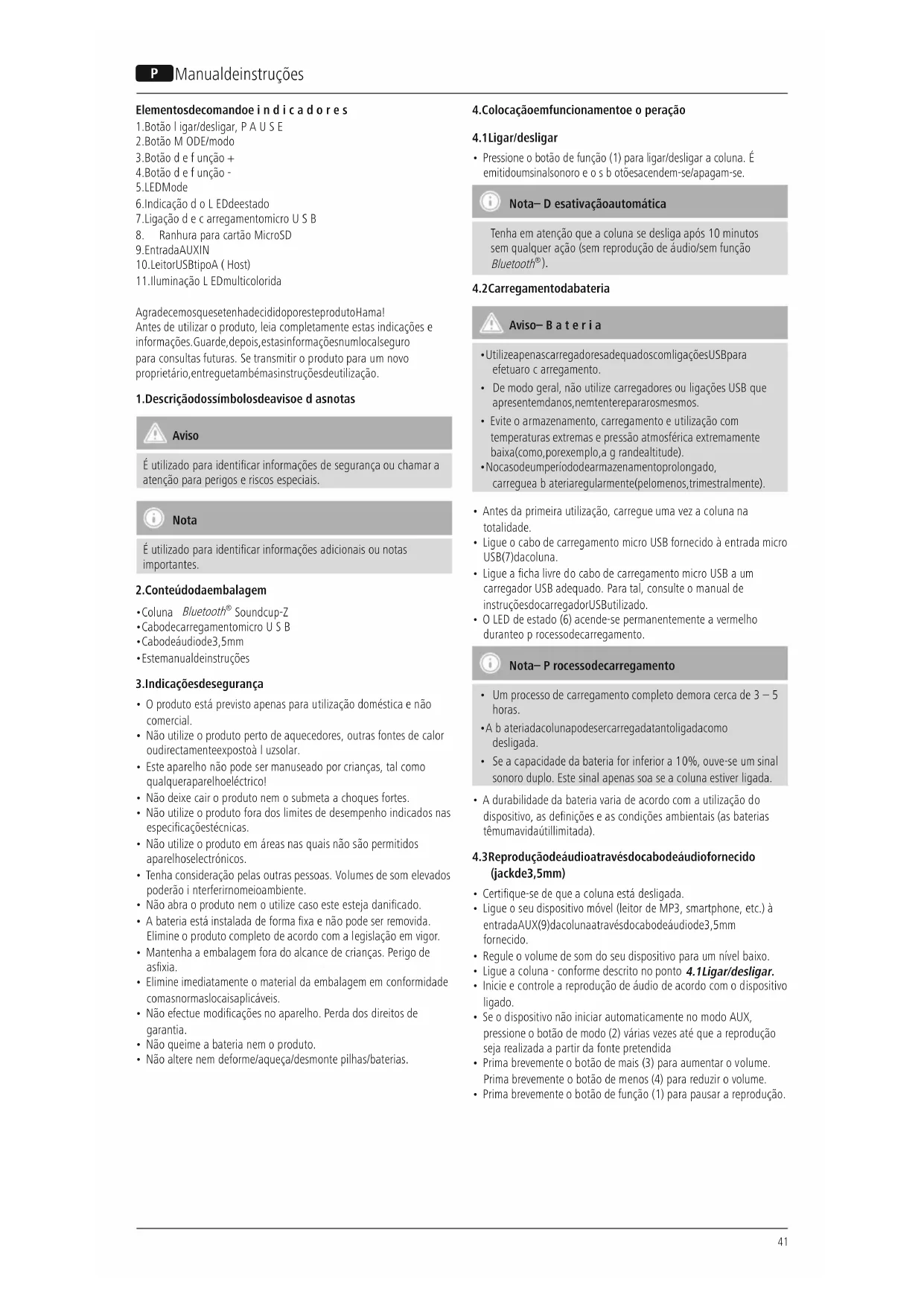 do dispositivo, verique se Hama Soundcup-Z está ligado. Caso nãoesteja, repita os passos descritos em Primeiraligação Bluetooth