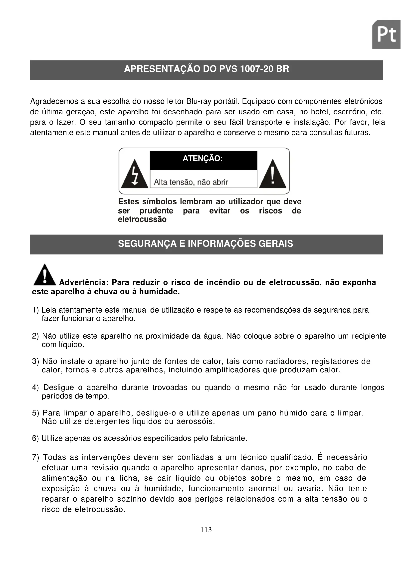 Sumário Declaração de conformidade ________________________________________________ 110 Apresentação do PVS 1007-20 BR ___________________________________________ 113 Segurança e informações gerais _____________________________________________ 113 Segurança RELACIONADA COM AUSCULDADORES ____________________________ 115