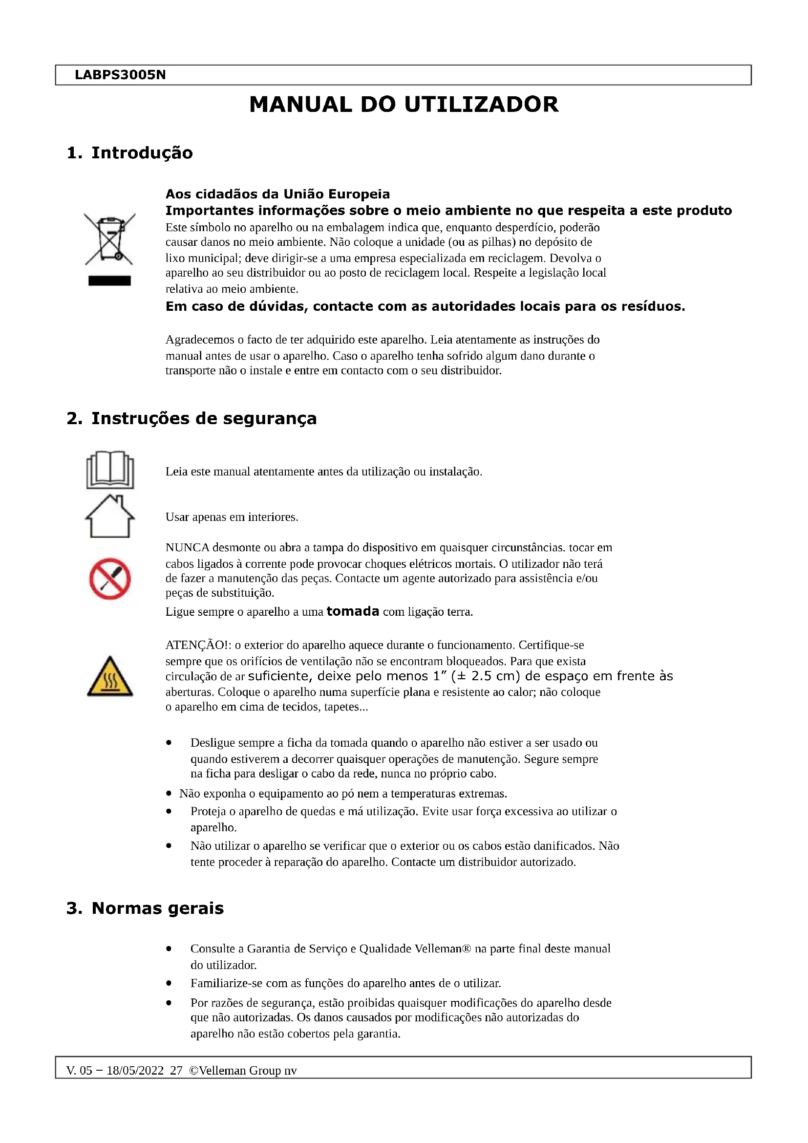 MANUAL DE UTILIZADOR LABPS3005N VELLEMAN