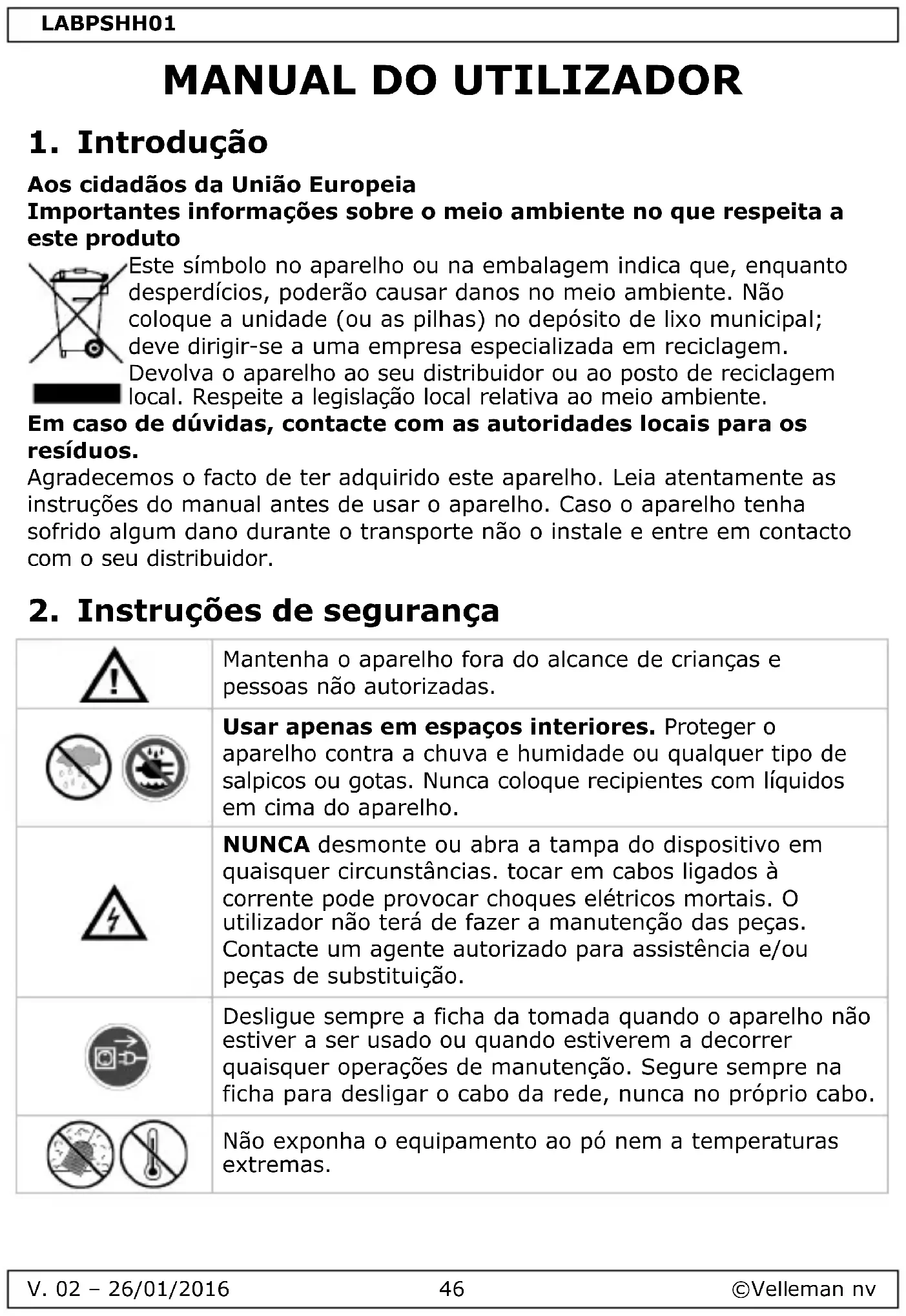 MANUAL DE UTILIZADOR LBPSHH01 VELLEMAN