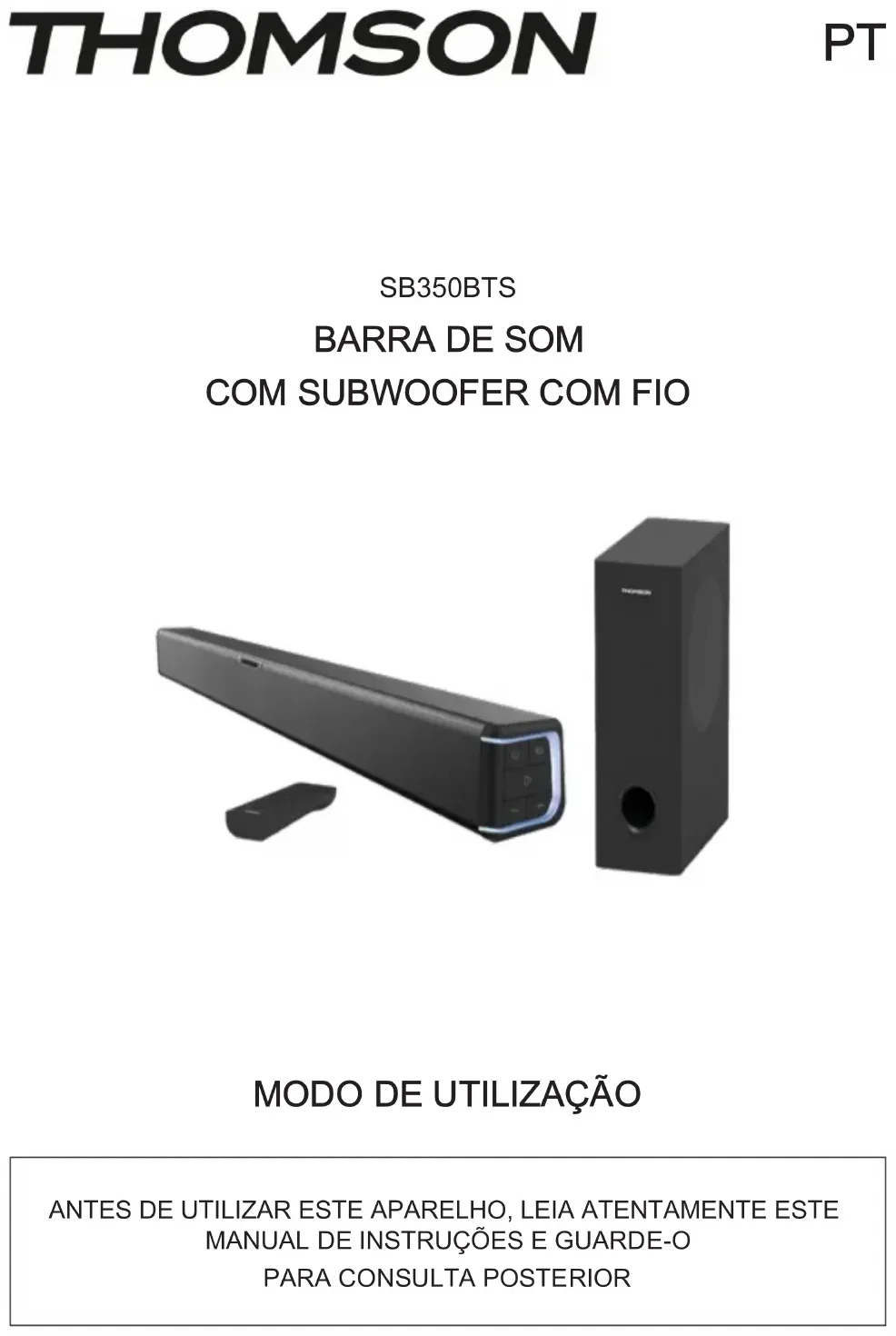 Encontre gratuitamente o manual do aparelho SB350BTS THOMSON em formato PDF.