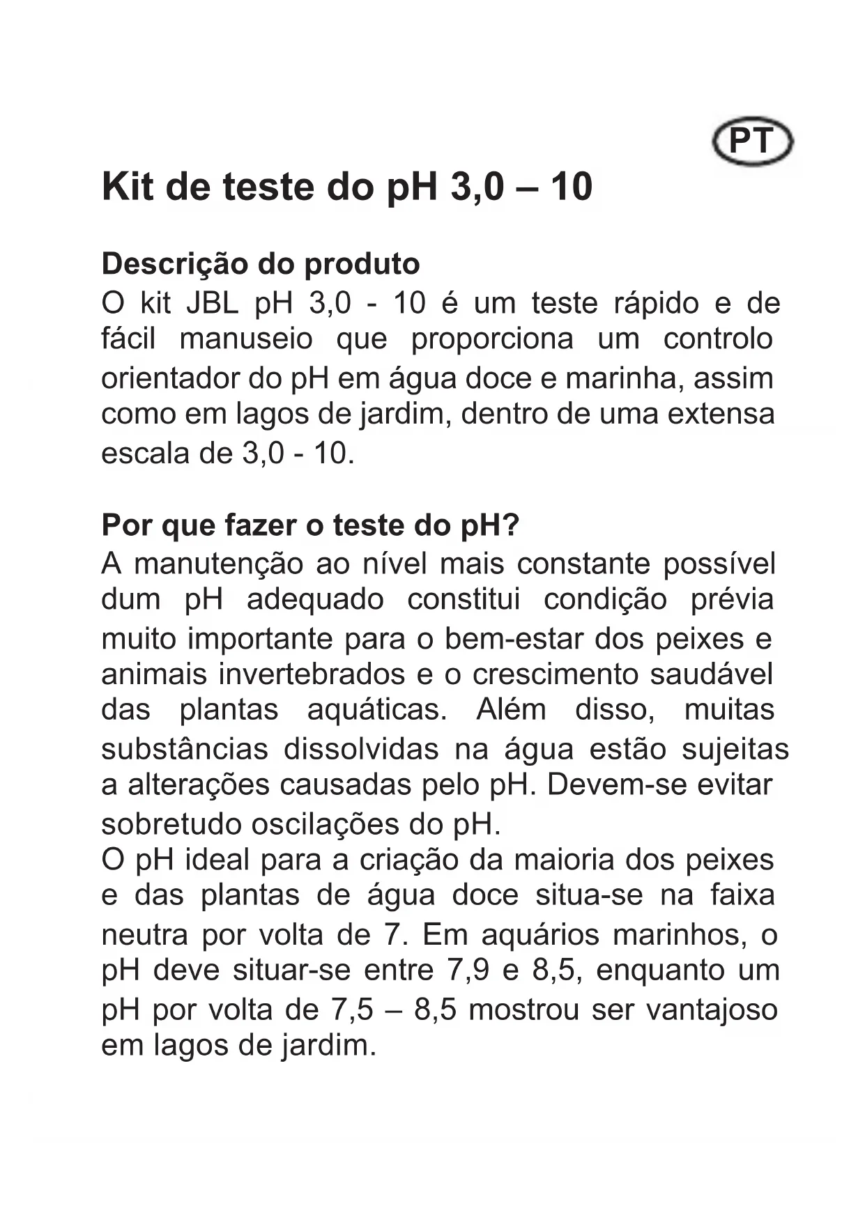pH 3 0-10 0 Test - Não categorizado JBL - Manual de utilização gratuito