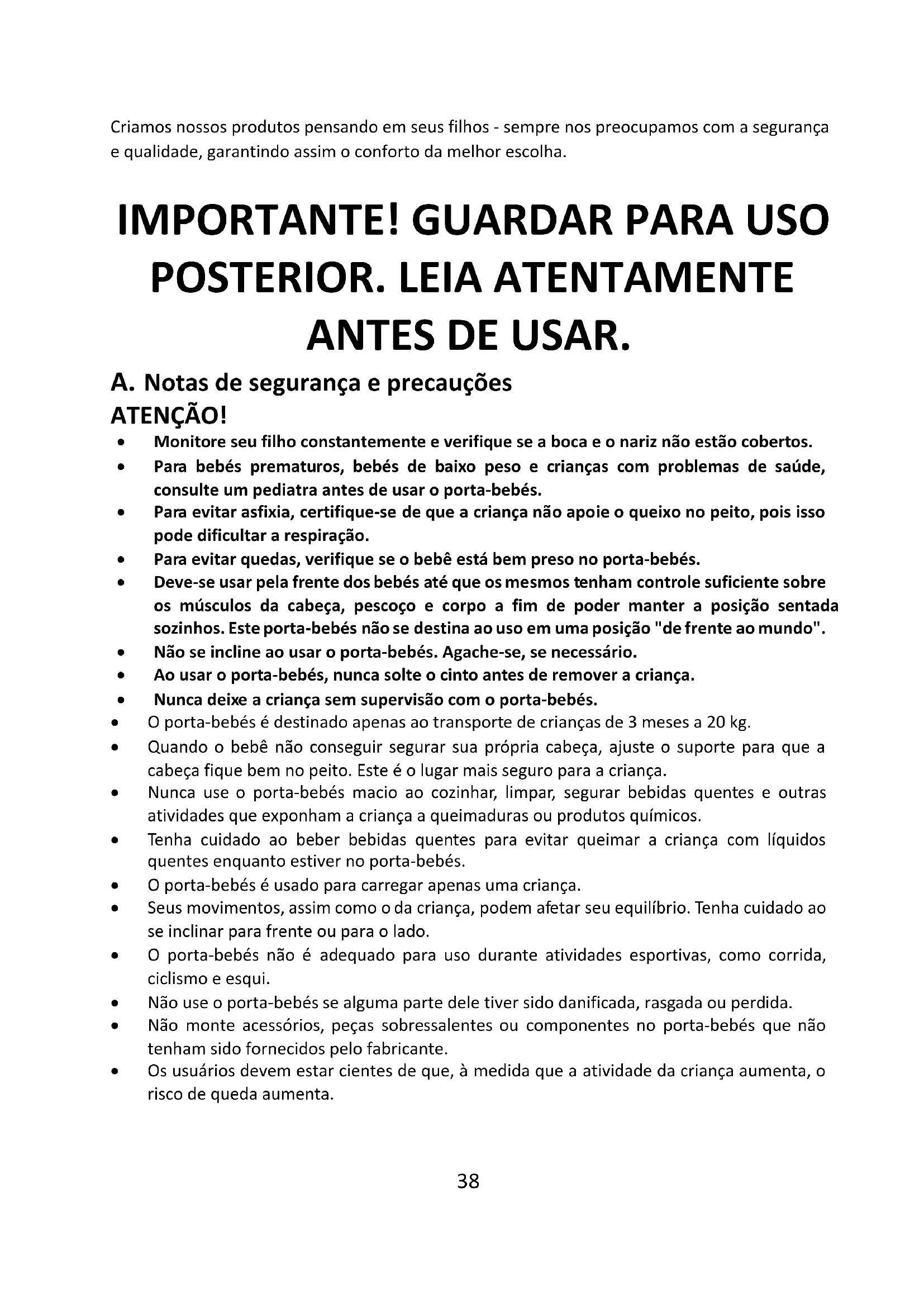 - Para bebés prematuros, bebés de baixo peso e crianças com problemas de saúde, consulte um pediatra antes de usar o porta-bebés.