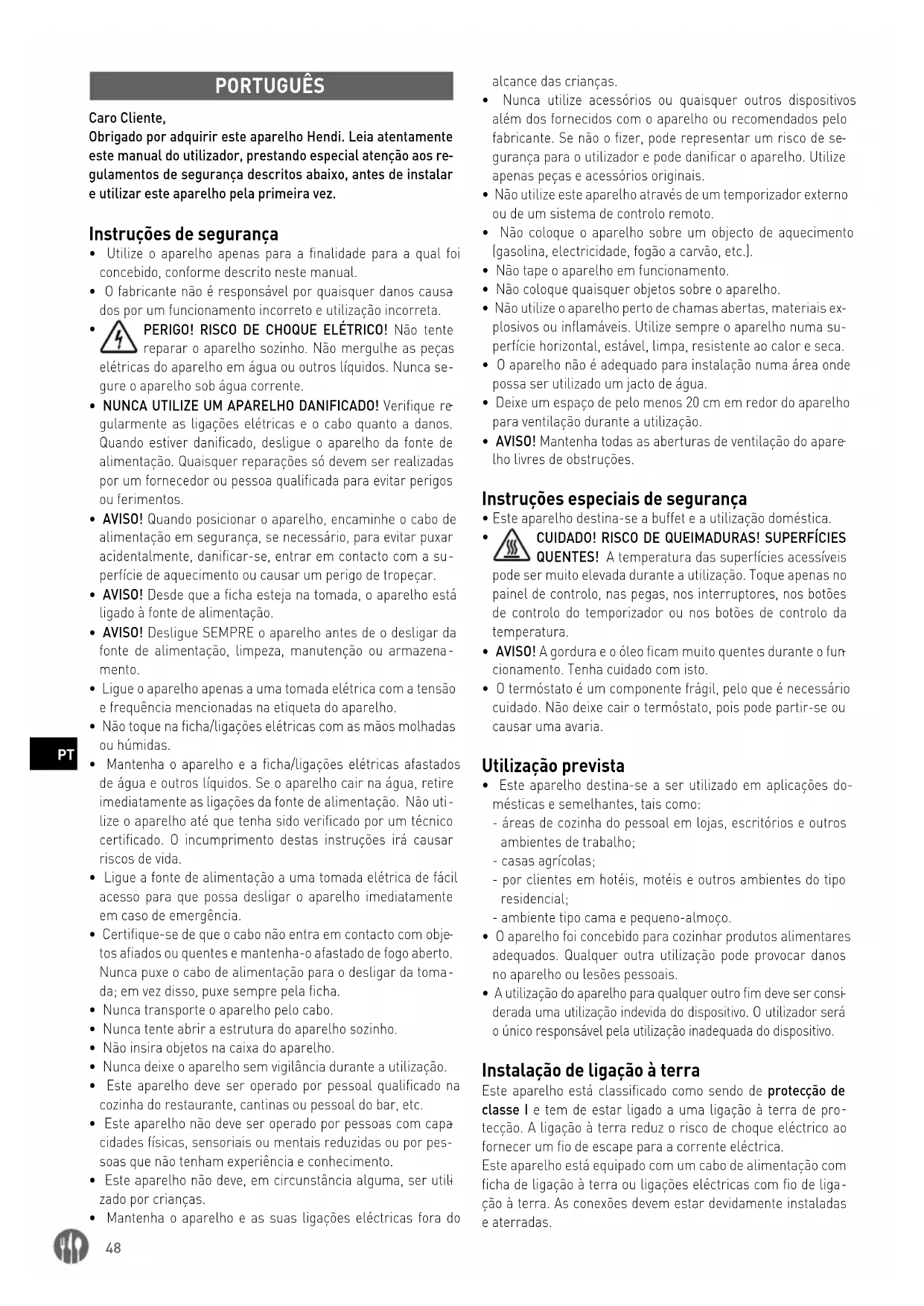 PORTUGUÊS Caro Cliente, Obrigado por adquirir este aparelho Hendi. Leia atentamente este manual do utilizador, prestando especial atenção aos re