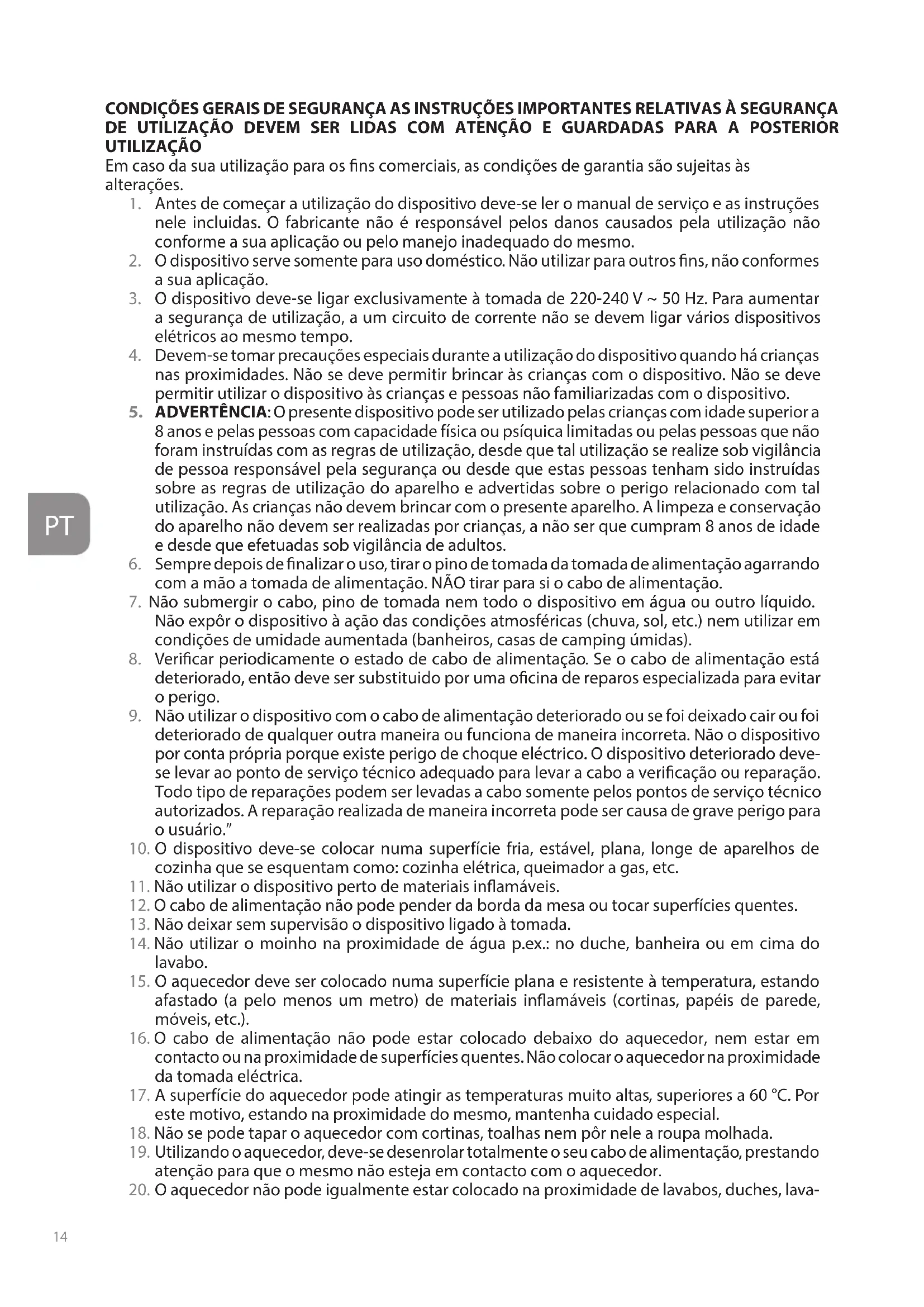 20. O aquecedor não pode igualmente estar colocado na proximidade de lavabos, duches, lava-15
