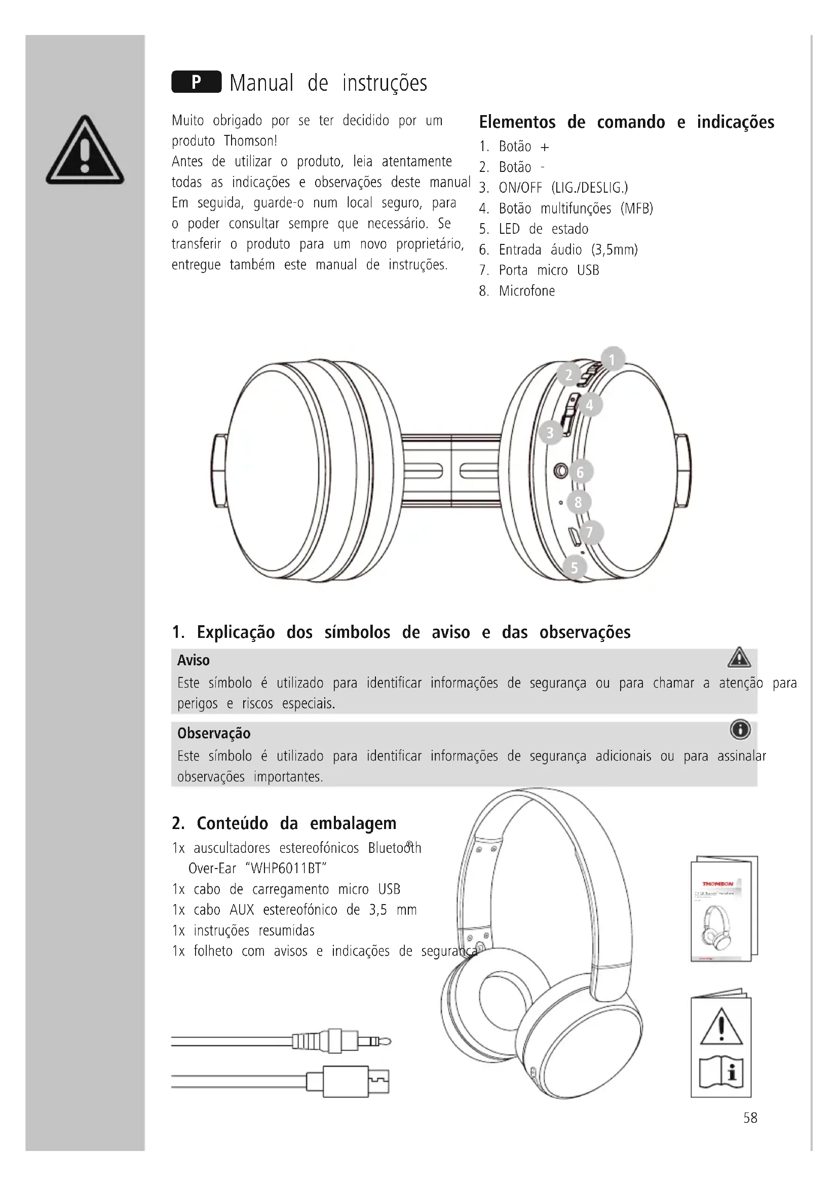 MANUAL DE UTILIZADOR WHP6011BT THOMSON