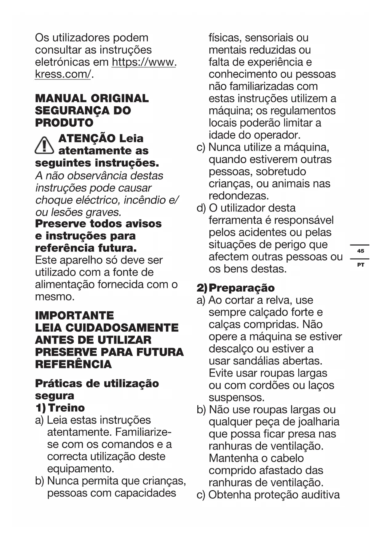 Os utilizadores podem consultar as instruções eletrónicas em https://www. kress.com/. MANUAL ORIGINAL