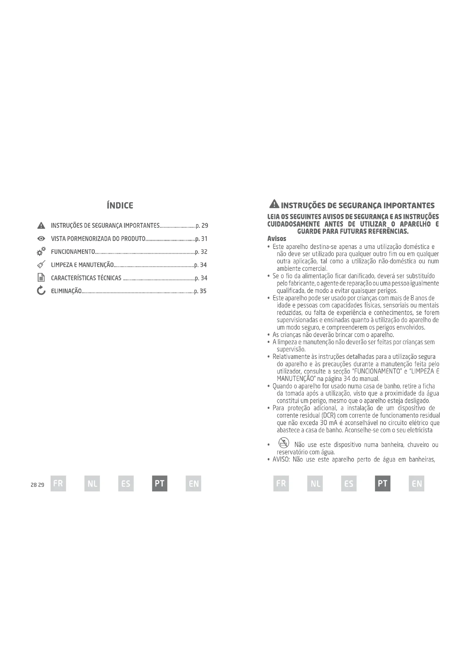- Este aparelho destina-se apenas a uma utilização doméstica e não deve ser utilizado para qualquer outro fim ou em qualquer outra aplicação, tal como a utilização não-doméstica ou num ambiente comercial.