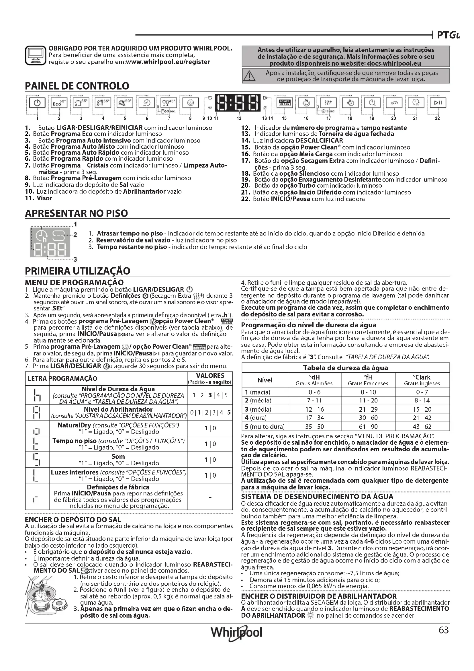 OBRIGADO POR TER ADQUIRIDO UM PRODUTO WHIRLPOOL. Para beneficiar de uma assistência mais completa, registe oseu aparelho em:www.whirlpool.eu/register