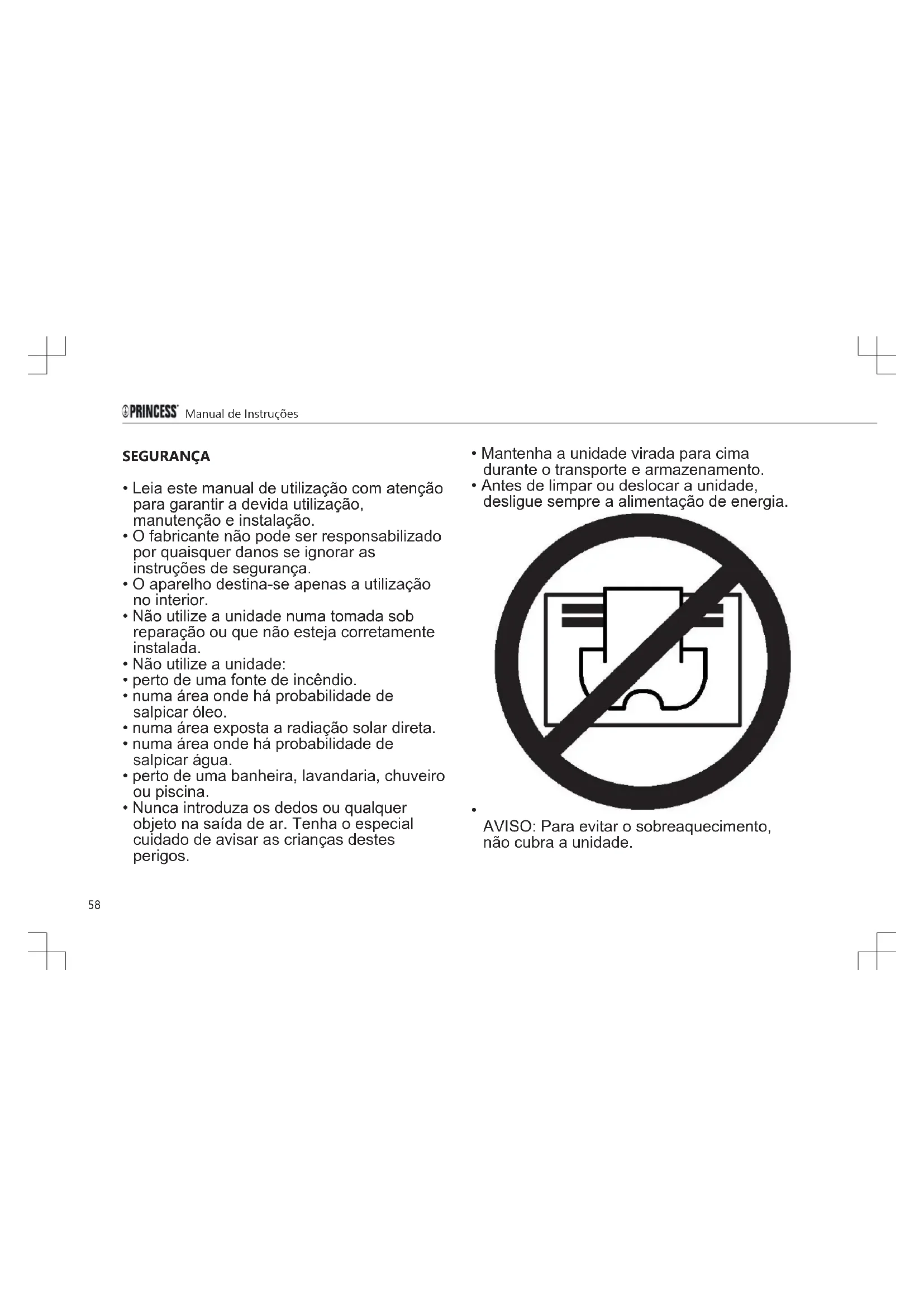 - Nunca introduza os dedos ou qualquer objeto na saída de ar. Tenha o especial cuidado de avisar as crianças destes perigos.