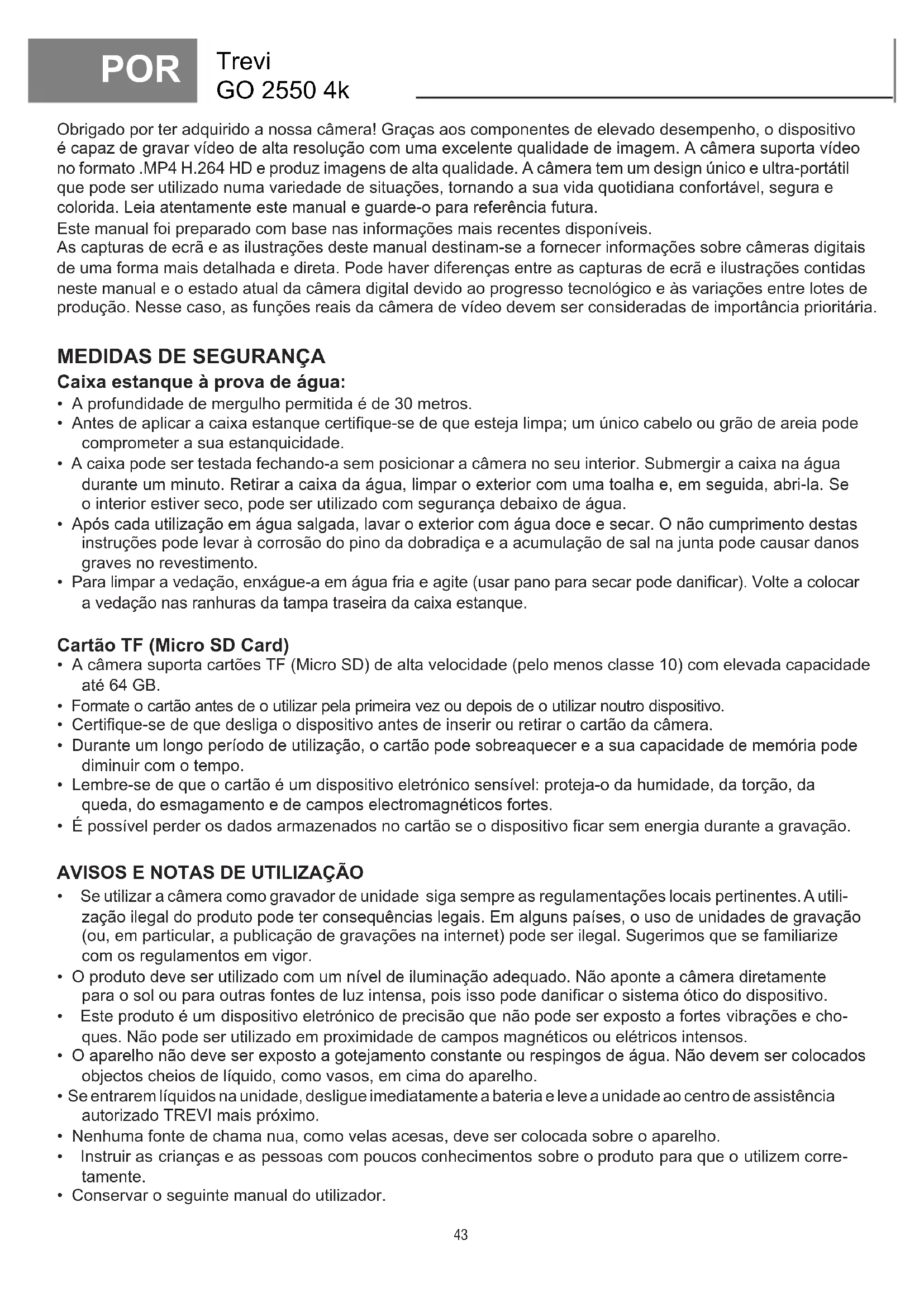 - Conservar o seguinte manual do utilizador. POR44 Trevi GO 2550 4K