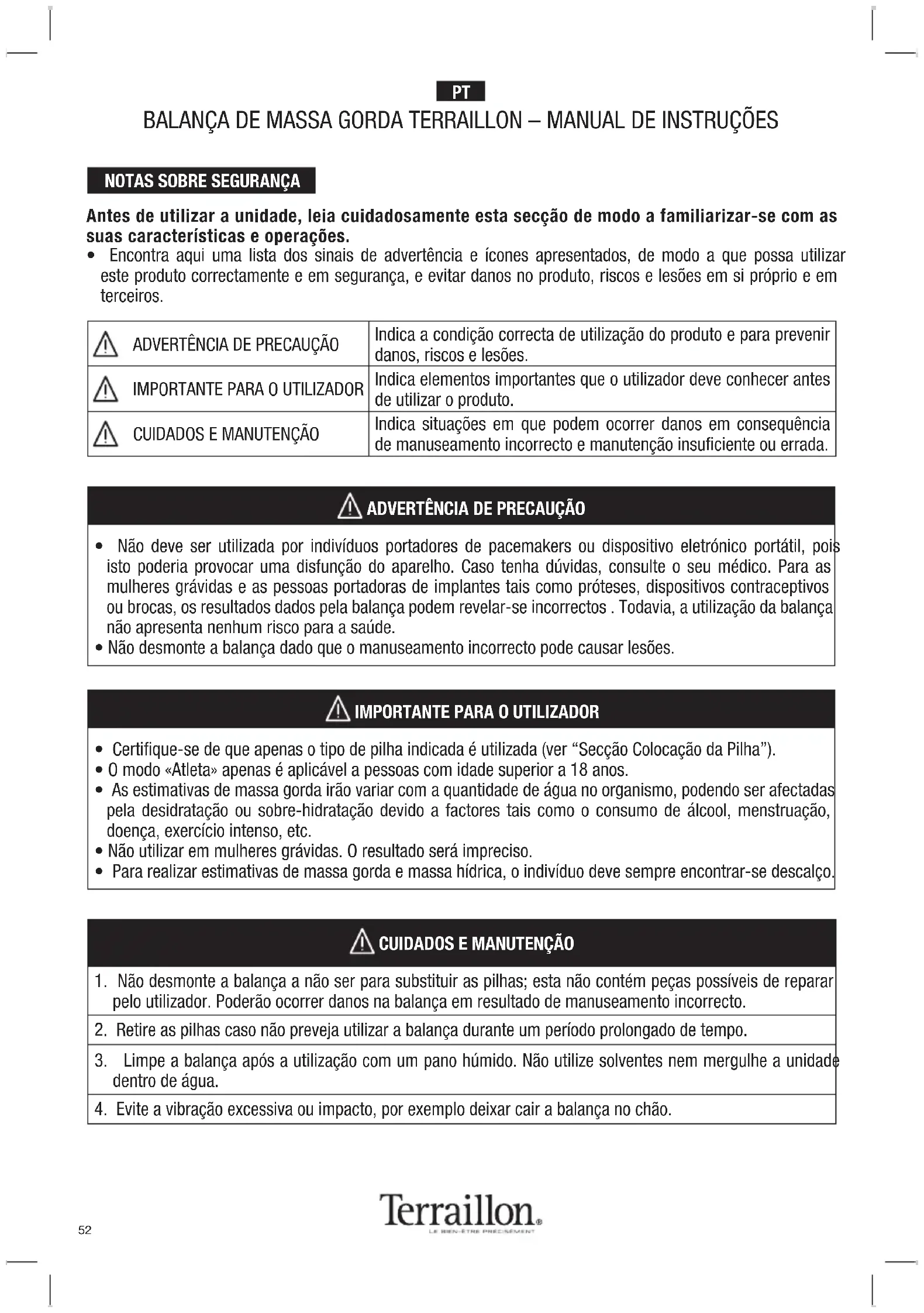 Regular Fit - Balanças TERRAILLON - Manual de utilização gratuito