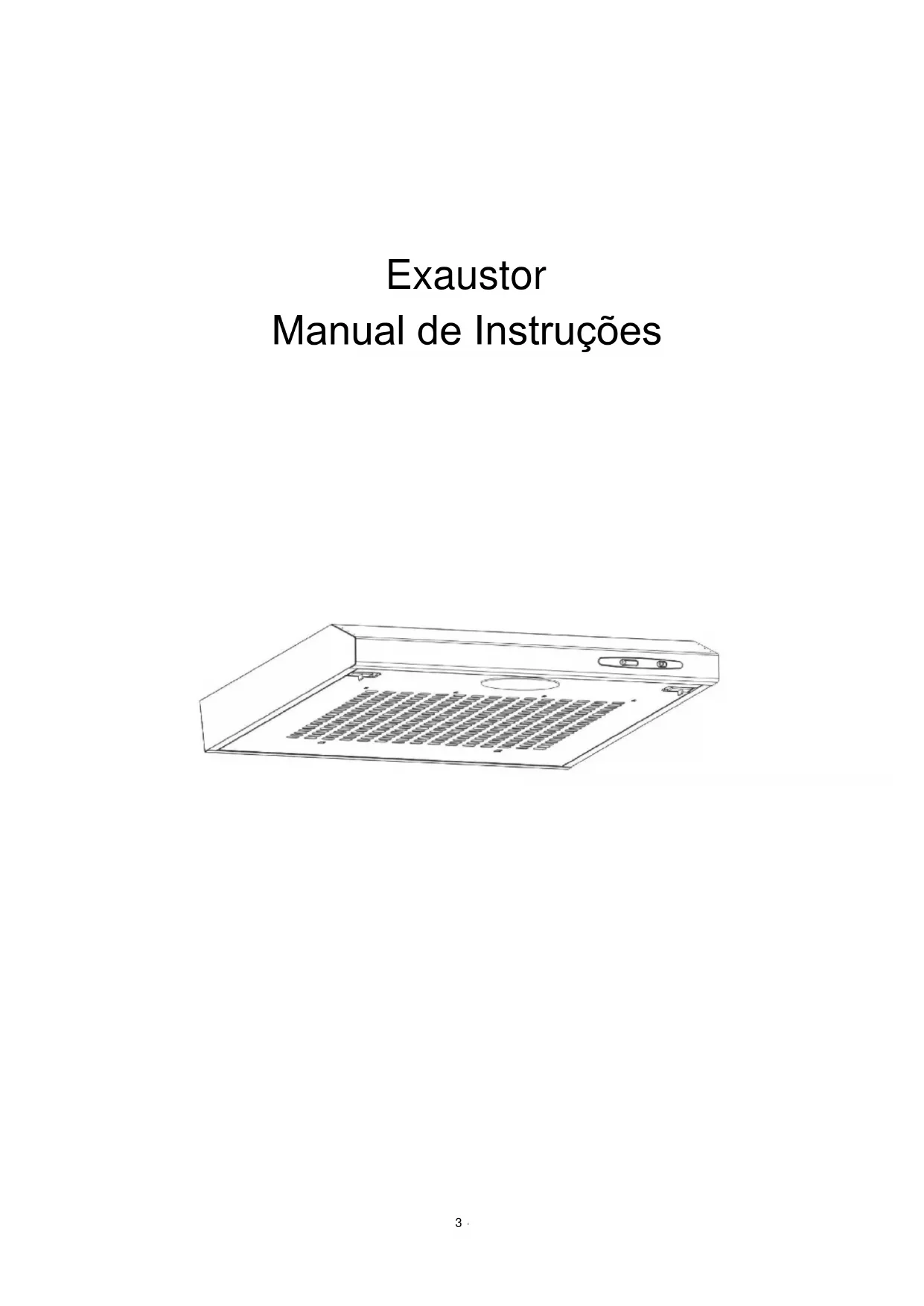 Este manual explica a instalação e a utilização correta do seu exaustor, leia-o atentamente antes de usar o produto, mesmo que já esteja familiarizado com o mesmo. O manual deve ser mantido num local seguro para referência futura. O que nunca deve fazer: ● Nunca tente usar o exaustor sem os filtros de gordura ou se os filtros estiverem demasiado engordurados! ● Não instale sobre um fogão com um grelhador muito elevado. ● Não deixe frigideiras em uso sem supervisão porque gorduras ou óleos sobreaquecidos podem incendiar-se. ● Nunca deixe chamas nuas sob o exaustor. ● Se o exaustor estiver danificado, não tente utilizá-lo. ● Não faça pratos flambé debaixo do exaustor. ● CUIDADO: As peças acessíveis podem tornar-se quentes quando usadas com aparelhos para cozinhar. ● A distância mínima entre a superfície de suporte para os recipientes para cozinhar no fogão e a parte mais baixa do exaustor. (Quando o exaustor estiver localizado sobre um aparelho a gás, esta distância deve ser de pelo menos 65 cm.) ● O ar não deve ser descarregado num tubo de chaminé utilizado para evacuar fumos de aparelhos que utilizem gás ou outros combustíveis. O que deve fazer sempre: ● Importante! Desligue sempre a fonte de alimentação na fonte durante instalação e manutenção como, por exemplo, quando troca uma lâmpada. ● O exaustor tem de ser instalado em conformidade com as instruções de instalação e cumprir todas as medições indicadas. ● Todo o trabalho de instalação tem de ser realizado por uma pessoa competente ou por um eletricista qualificado. ● Elimine o material da embalagem cuidadosamente. As crianças são vulneráveis a este material. ● Preste atenção às extremidades aguçadas no interior do exaustor durante a instalação e limpeza. ● Quando o exaustor estiver localizado por cima de um aparelho a gás, a distância mínima da superfície de suporte para os recipientes para cozinhar no fogão e a parte mais baixa do exaustor essa distância tem de ser: Fogões a gás: 75 cm Fogões elétricos: 65 cm Fogões a óleo ou carvão: 75 cm ● Certifique-se de que a canalização não tem dobras com um ângulo mais apertado que 90 graus uma vez que isto reduz a eficiência do exaustor. ● Aviso: Se os parafusos ou o dispositivo de fixação não forem montados de acordo com estas instruções, podem ocorrer riscos elétricos 36O que deve fazer sempre: ● Coloque sempre tampas nos tachos e panelas quando estiver a cozinhar num fogão a gás. ● Quando no modo de extração, o ar na divisão está a ser removido pelo exaustor. Certifique-se de que estão a ser cumpridas as medidas de ventilação apropriadas. O exaustor remove odores da divisão mas não o vapor. ● O exaustor destina-se apenas a uso doméstico. ● Se o cabo de alimentação estiver danificado, tem de ser substituído pelo fabricante, pelo agente de serviço ou por pessoas igualmente qualificadas de forma a evitar o perigo. ● Este aparelho pode ser utilizado por crianças de idade igual ou superior a 8 anos e por pessoas com capacidades físicas, sensoriais ou mentais reduzidas ou falta de experiência e conhecimento, caso lhes tenha sido fornecida supervisão ou instruções relativas à utilização do aparelho de forma segura e desde que compreendam os perigos envolvidos. As crianças não devem brincar com o aparelho. A limpeza e manutenção pelo utilizador não deve ser realizada por crianças sem supervisão. ● Aviso: Antes de obter acesso a terminais, todos os circuitos de alimentação elétrica têm de estar desligados. O que deve fazer sempre: ● Cuidado: O aparelho e as suas peças acessíveis podem ficar quentes durante o funcionamento. Tenha o cuidado de evitar tocar nos elementos de aquecimento. Crianças com menos de 8 anos devem manter-se afastadas a menos que estejam sob constante supervisão. ● Deverá existir uma ventilação adequada da divisão quando o exaustor estiver a ser usado ao mesmo tempo que aparelhos a queimar gás ou outros combustíveis. ● Existe o risco de incêndio se a limpeza não for realizada de acordo com as instruções ● Os regulamentos referentes à descarga de ar têm de ser cumpridos. ● Limpe o seu aparelho periodicamente seguindo o método fornecido no capítulo MANUTENÇÃO. ● Por motivos de segurança, use apenas o mesmo tamanho de parafuso de montagem ou fixação recomendado neste manual de instruções. ● Em relação a dados sobre o método e sobre a frequência de limpeza, consulte a secção de manutenção e limpeza no manual de instruções. ● A limpeza e manutenção pelo utilizador não deve ser realizada por crianças sem supervisão. ● Quando o exaustor e aparelhos com fornecimento de energia que não eletricidade estiverem simultaneamente em funcionamento, a pressão negativa na divisão não deve exceder 4 Pa (4 x 10-5 bar). ● AVISO: Perigo de incêndio: não guarde artigos em cima das superfícies de cozedura. ● Não deve nunca utilizar um aparelho de limpeza a vapor. ● NUNCA tente extinguir um incêndio com água, em vez disso desligue o aparelho e, em seguida, cubra a chama com, por exemplo, uma tampa ou um cobertor antifogo. 37INSTALAÇÃO A. INSTALAÇÃO (montagem na parede) (1) Decida a localização dos furos para fixar o exaustor. (2) Instalar o exaustor na parede com 4 parafusos (4x 30 mm) B. INSTALAÇÃO (montagem em armário) (1) Monte o exaustor no armário utilizando 4 parafusos (4 x 35 mm), 4 porcas e anilhas planas. Fixar o exaustor no armário passando 4 parafusos e 4 anilhas planas desde a parte de cima do armário até ao exaustor. Depois, dentro do exaustor, passe a anilha plana e a porca pelo parafuso para prender o aparelho ao armário.