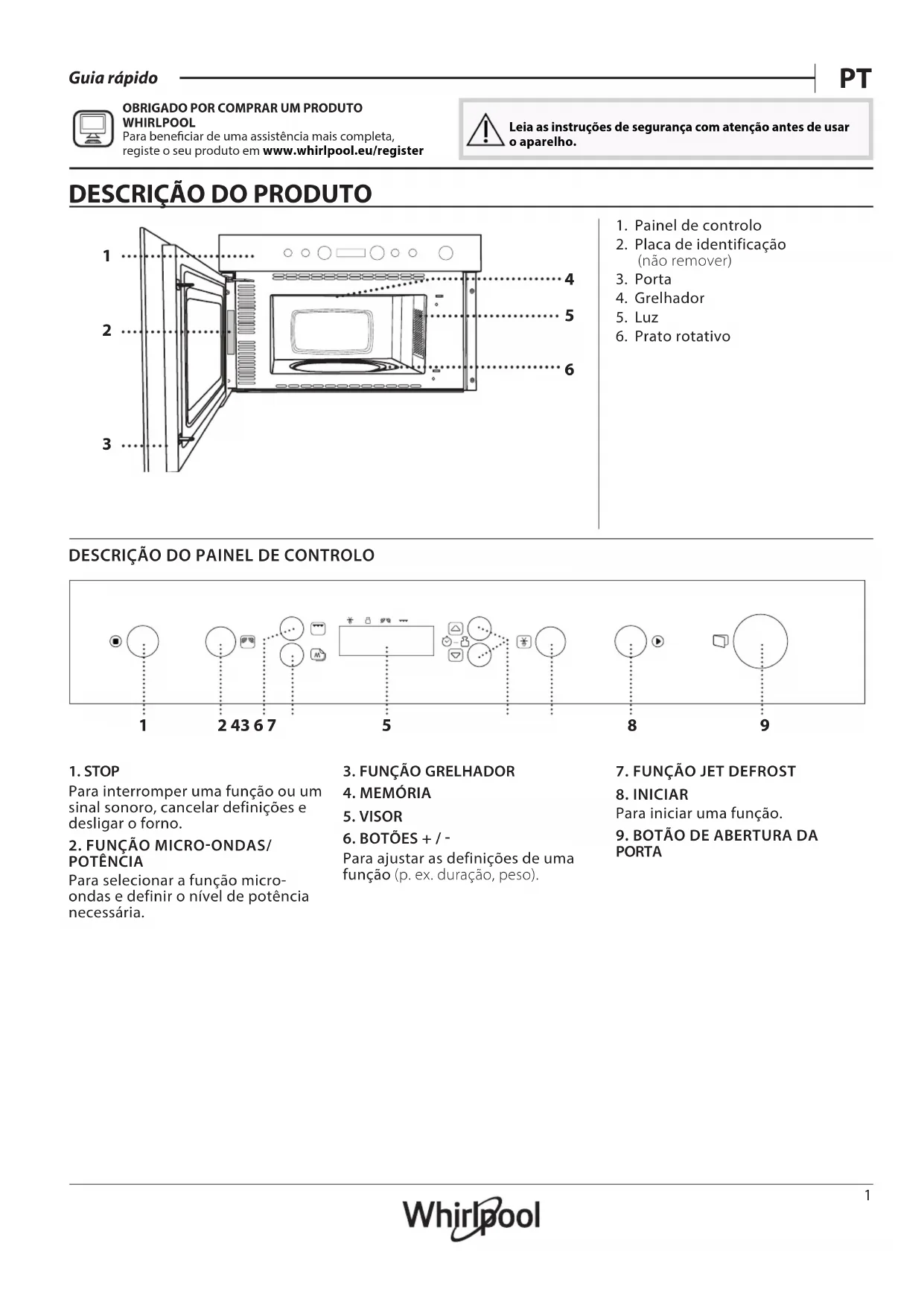WHIRLPOOL Para beneciar de uma assistência mais completa, registe o seu produto em www . whirlpool . eu/ register Leia as instruções de segurança com atenção antes de usar o aparelho.