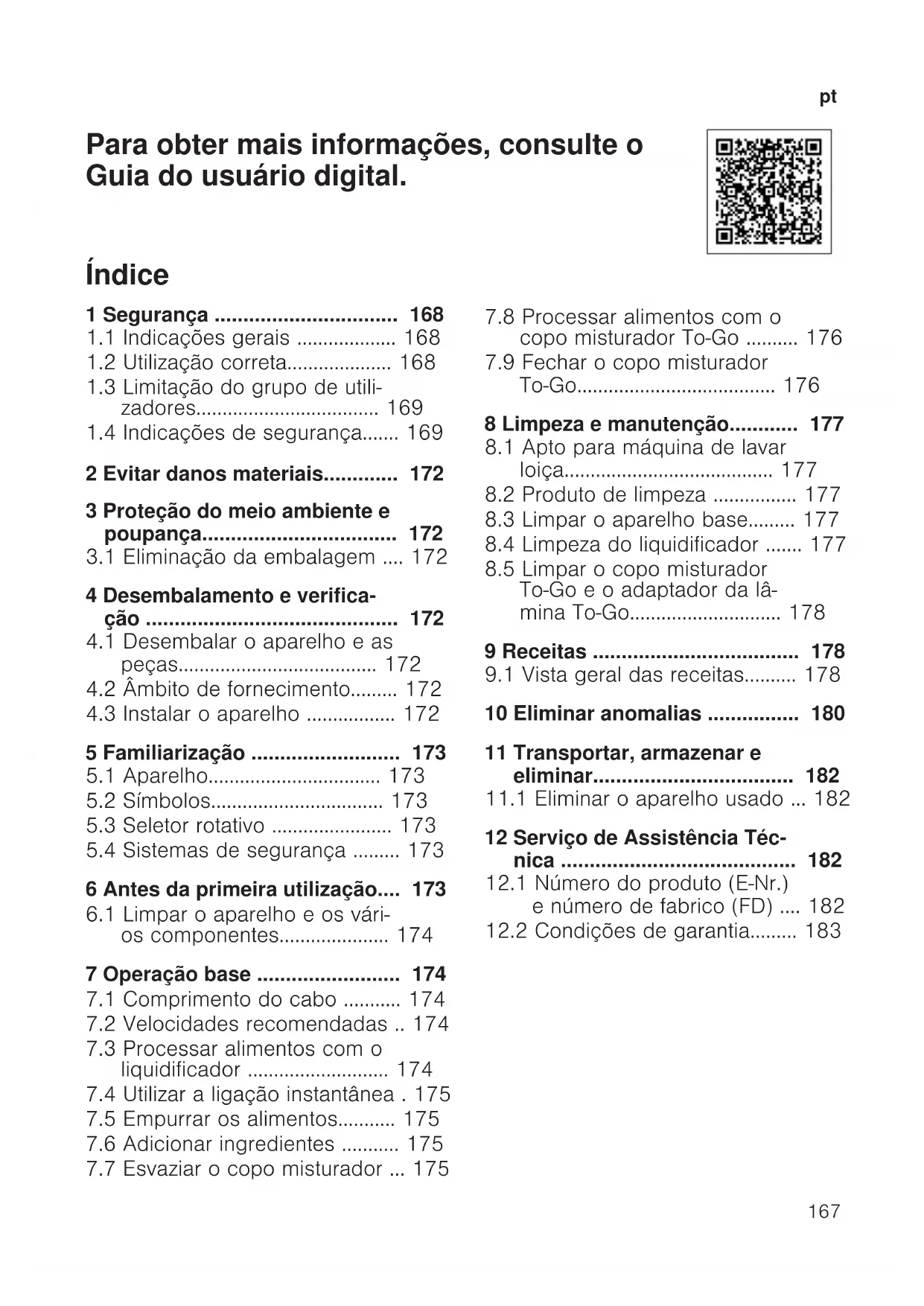 Para obter mais informações, consulte o Guia do usuário digital. Índice 1 Segurança ................................168