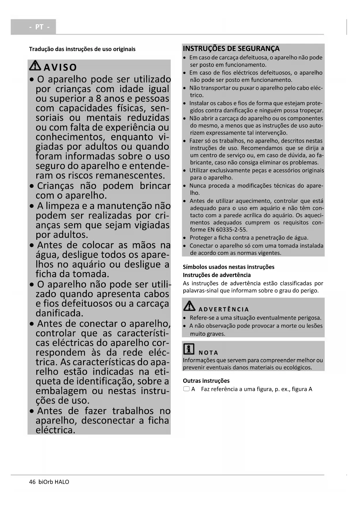 - PT - Tradução das instruções de uso originais AVISO