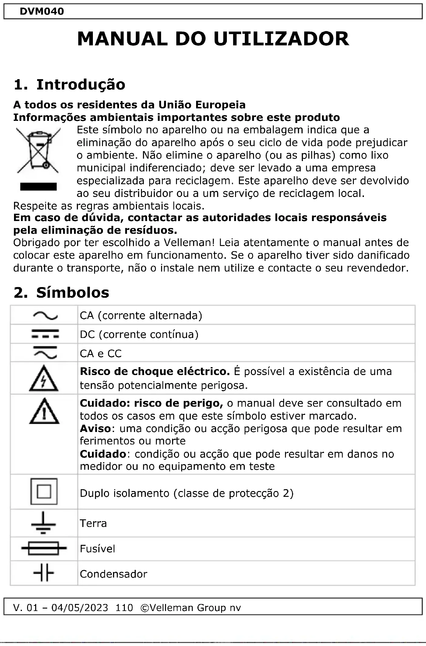 Encontre gratuitamente o manual do aparelho DVM040 VELLEMAN em formato PDF.