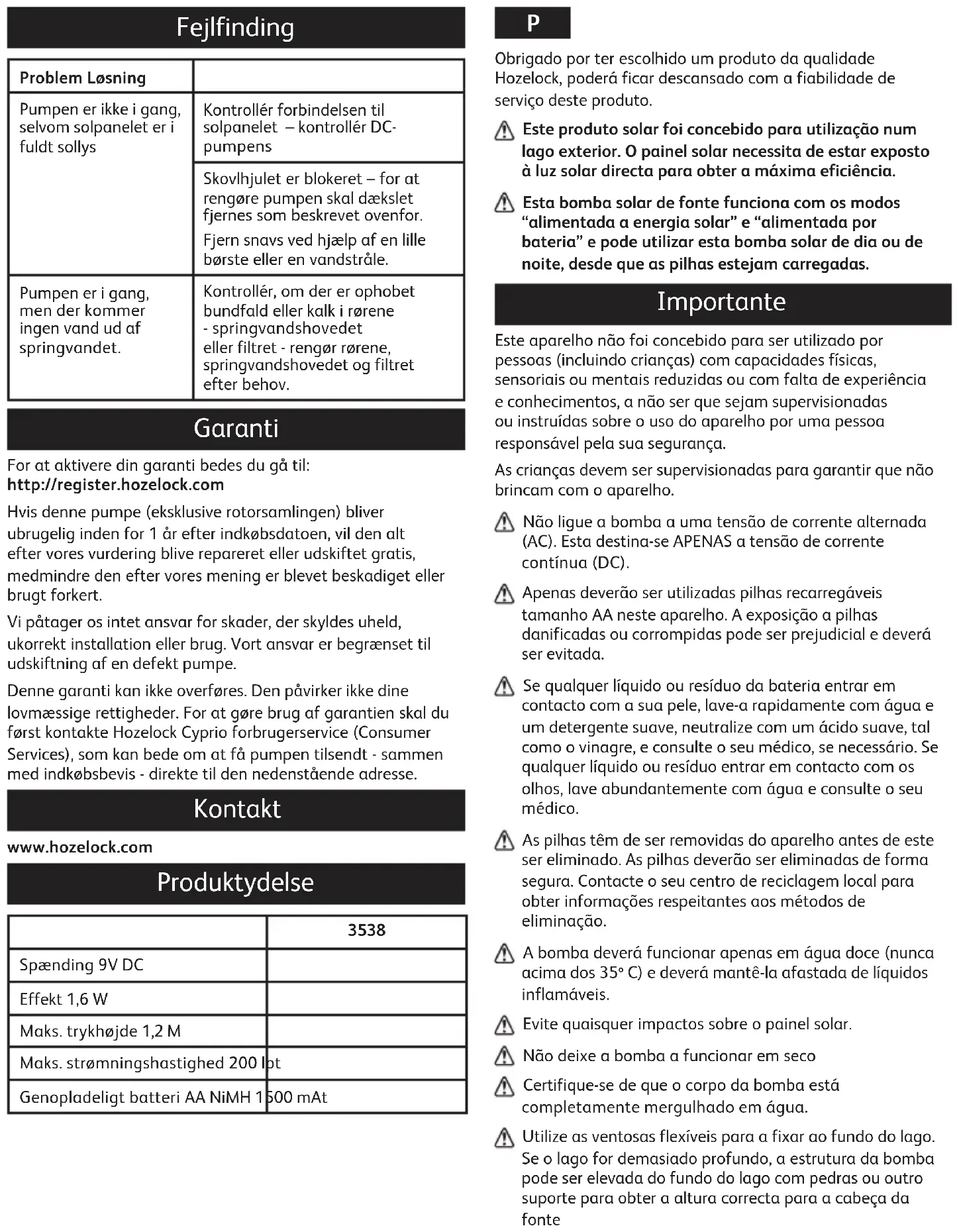 Encontre gratuitamente o manual do aparelho Solar Cascade Pump 3538 HOZELOCK em formato PDF.