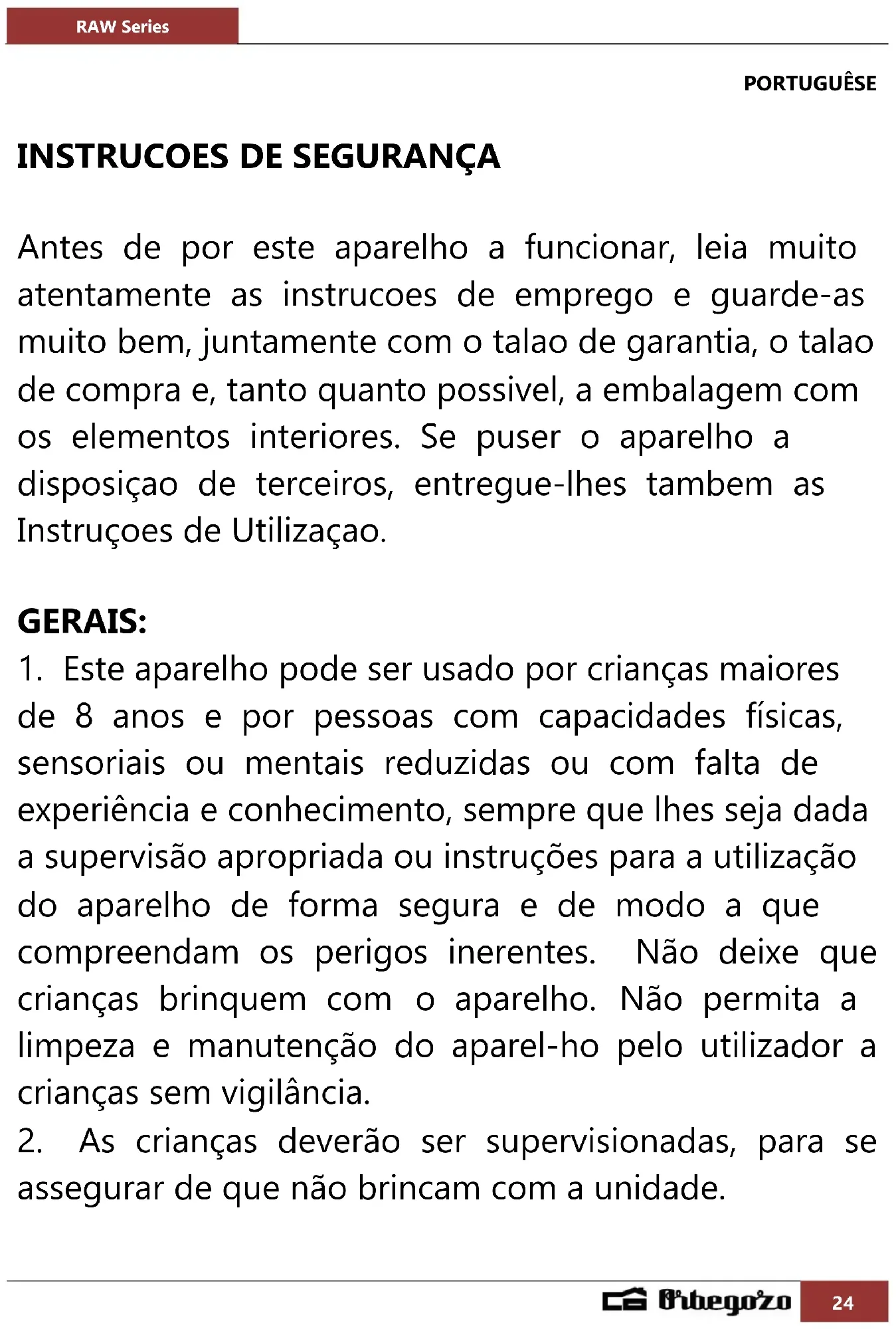 MANUAL DE UTILIZADOR RAW 2000 Orbegozo